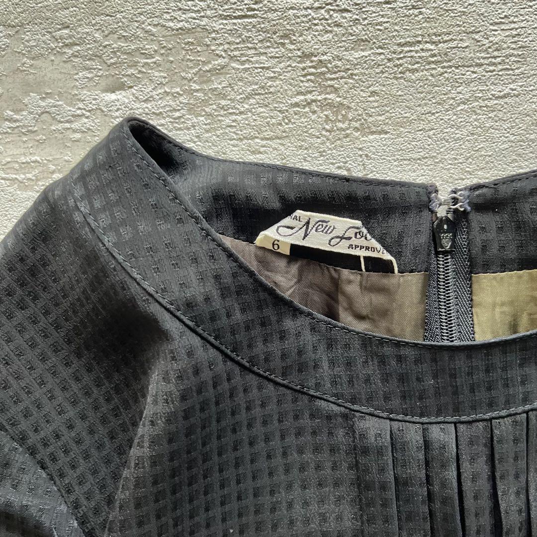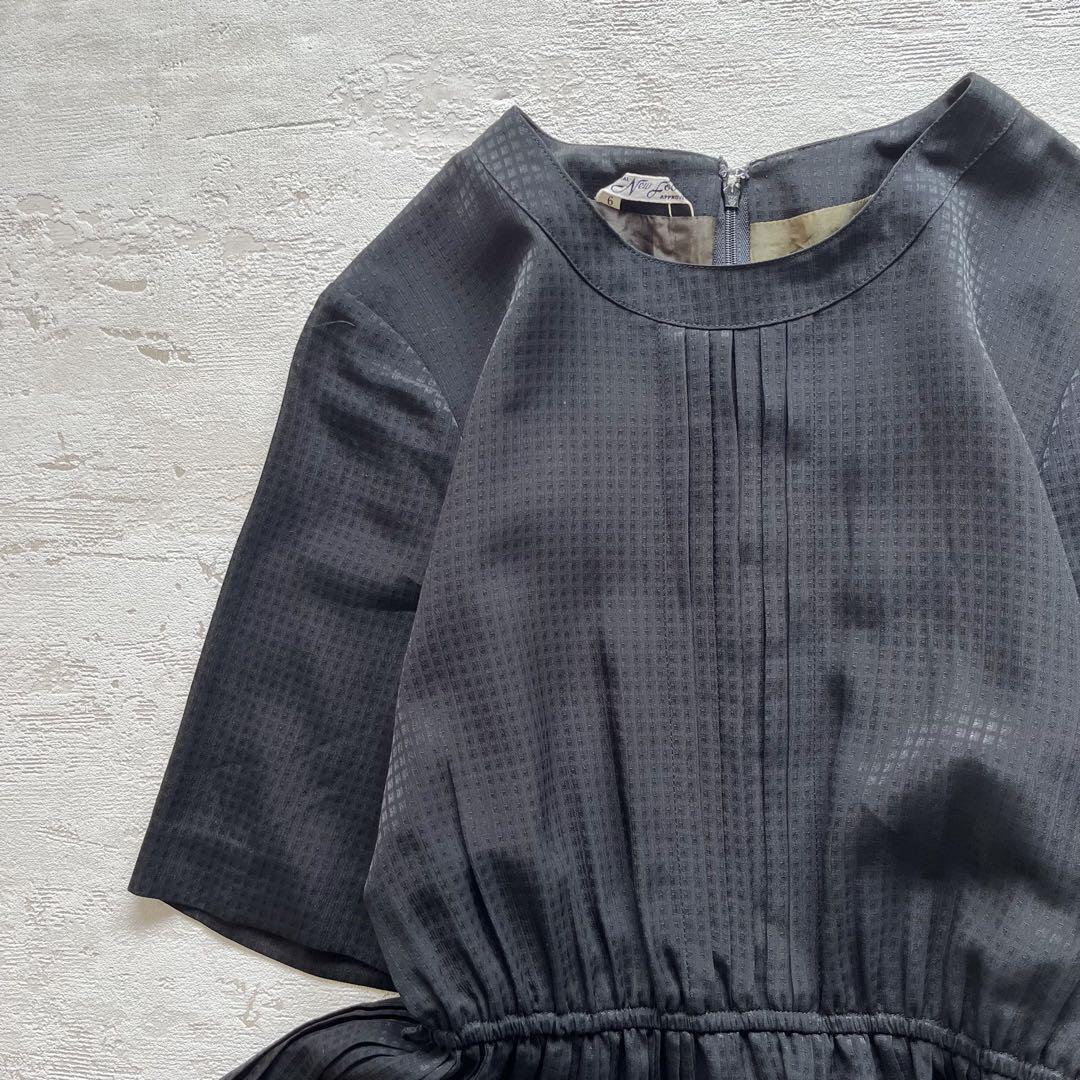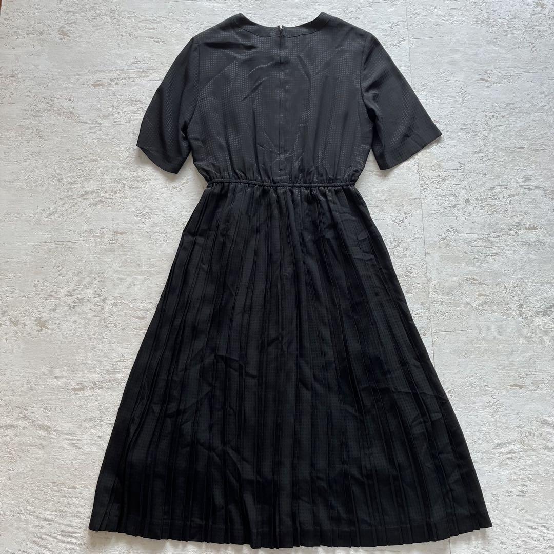 昭和レトロブロックチェック柄半袖ロングワンピースフォーマルブラック9号M1