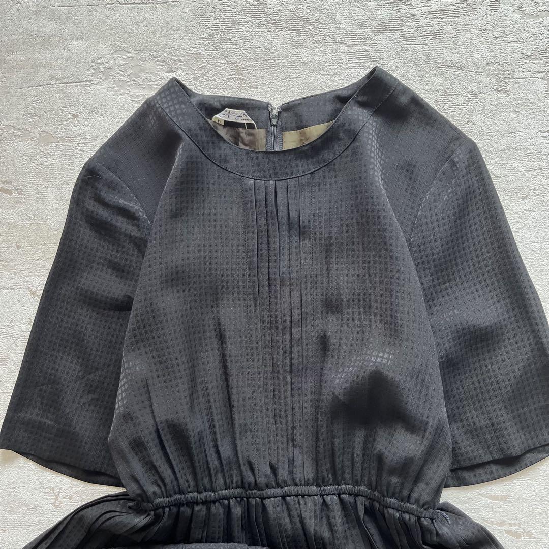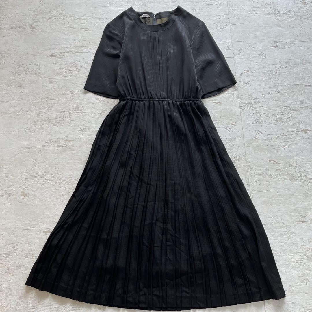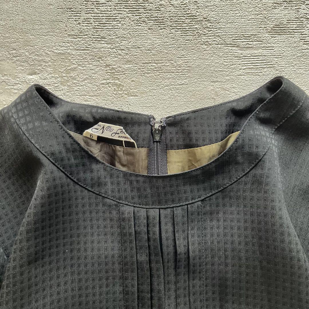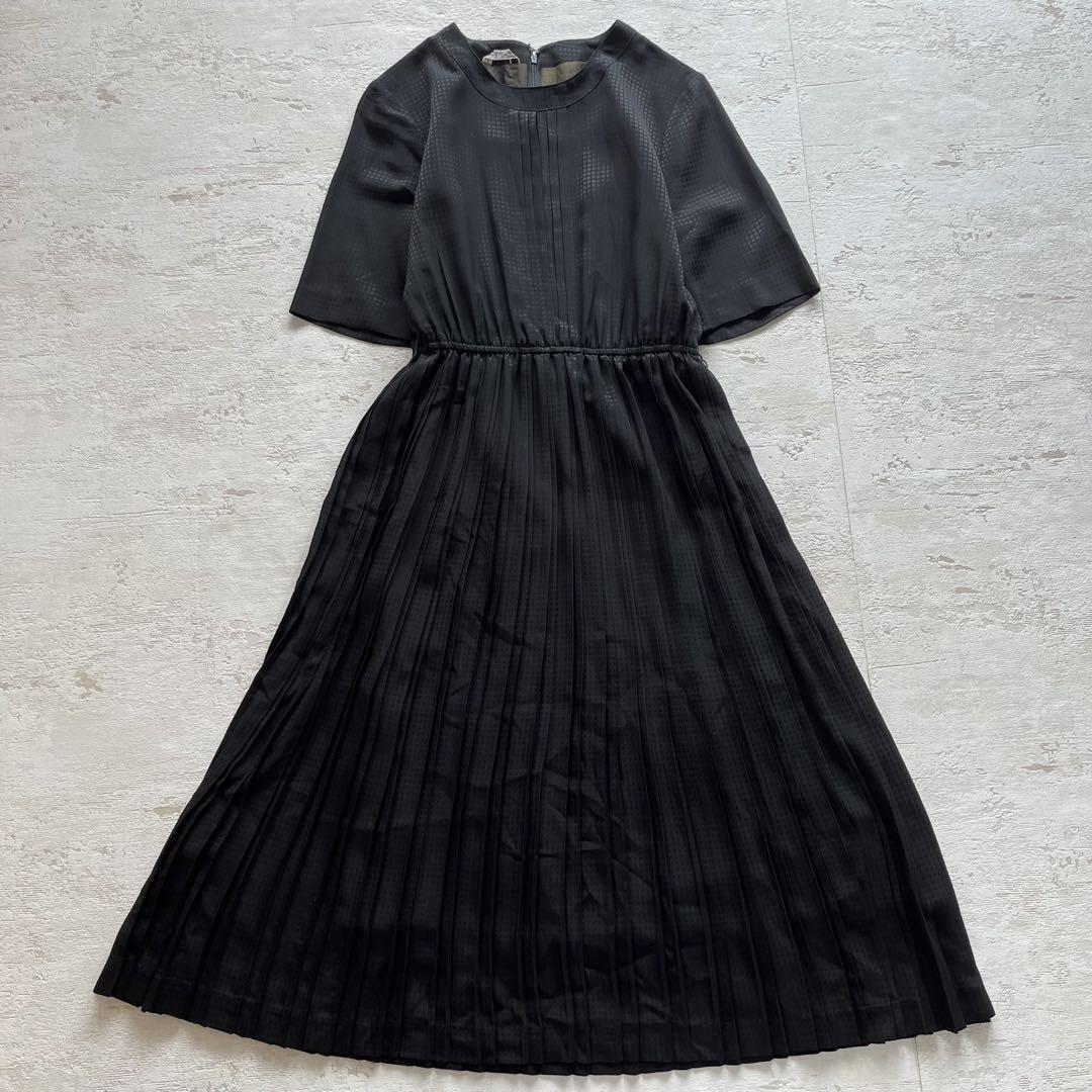 昭和レトロブロックチェック柄半袖ロングワンピースフォーマルブラック9号M1