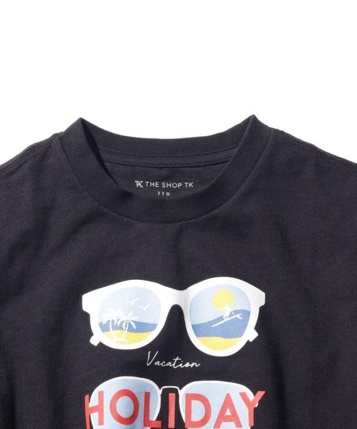 新品 THE SHOP TK(Kids) プリントクルーネックTシャツ ブラック(019) 14(140cm) 定価1430円