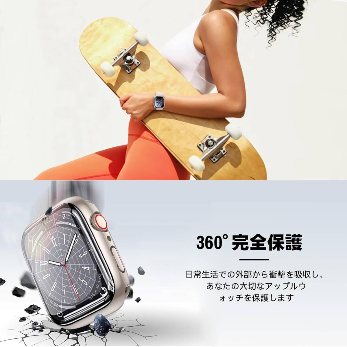 CAERMA for Apple Watch ケース Series 10/9/8/7/SE2/SE/6/5/4 45mm 超薄型 for アップルウォッチ カバー 防水 PC素材 硬度9H強化ガラス 高透過率 指紋防止 耐衝撃 全面保護 for Apple Watch カバー スターライト