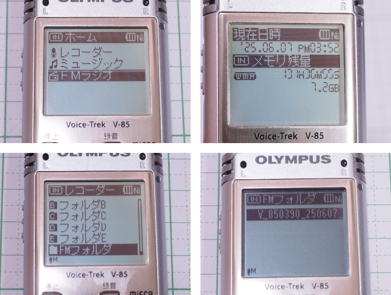 商品の補足説明(主観的な内容も含む) 液晶表示に難があり、横に1本非表示部があります。ちょうどFM選局数字の中央部分が表示されないため、選局時に0と8が区別できません。(もしかするとFM局をプリセットしておけば選局しやすくなるのかもしれませんが、そこまでは試していません。当商品は、FMラジオを使用しないかた、FMラジオの選局をあまりしないかたに向いていると思います。) テストで何度か録音したときのファイル番号が、『V_850390』位でしたので、390回程度の録音回数かと思います。(あくまで、ファイル名から想定になります。ファイル番号は、少し増える場合があります。) 黒いソフトケースは、かなり使用感がありスポンジがへたってきていますので、おまけ程度です。 クリックポストでの発送を予定しており、梱包厚さの制限があるため簡易梱包になります。 |