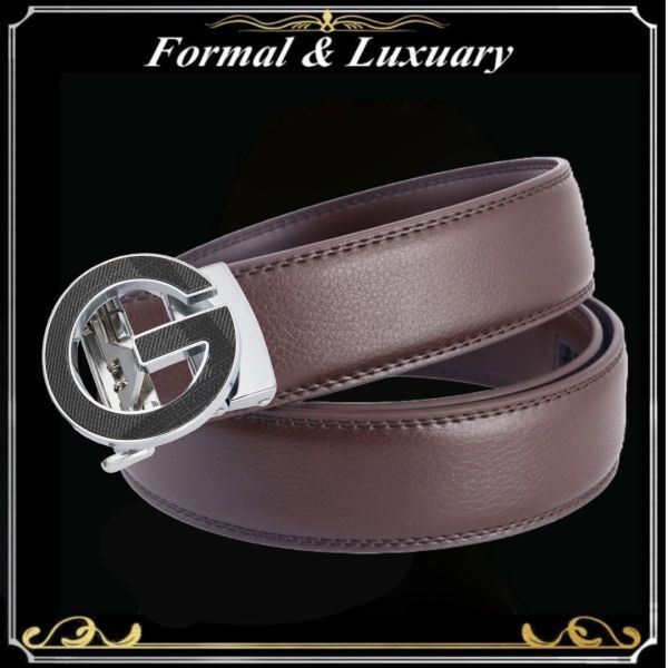 ベルト j38【茶】折りたたみ発送 ダーク 穴なし 無段階調整ベルト ゴルフベルト 人気 オートロック メンズ 革 ビジネス カジュアル