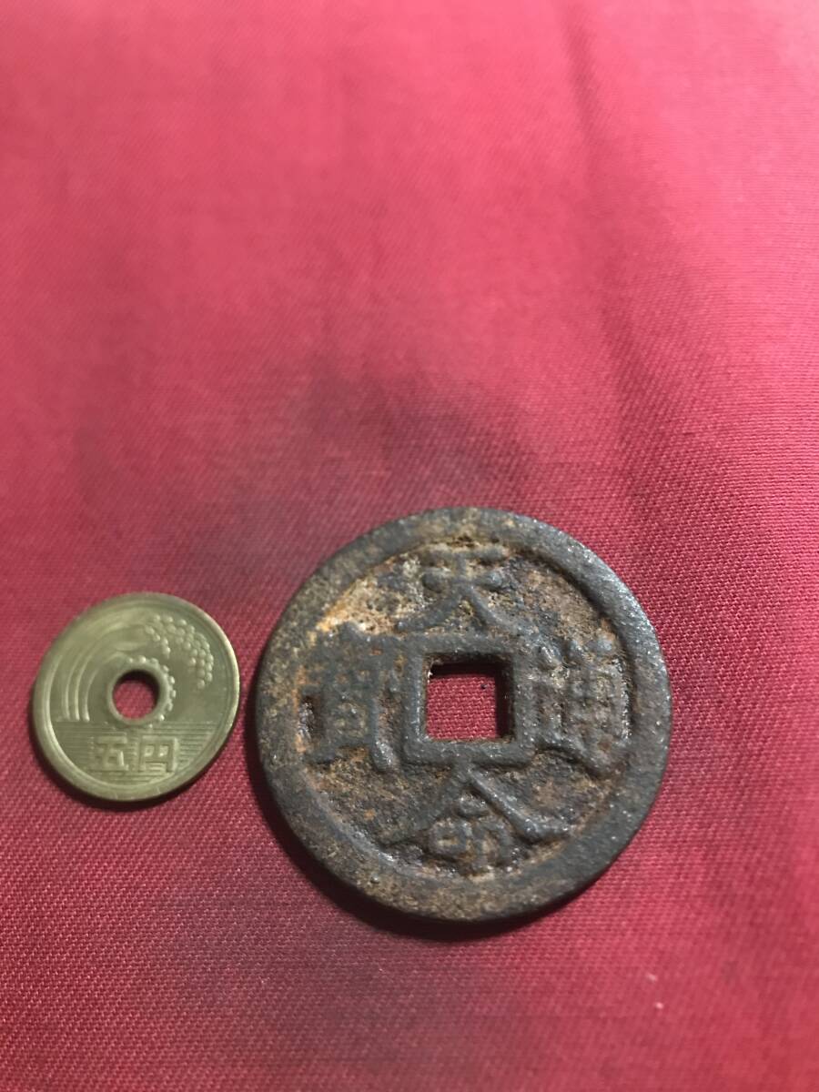 鉄銭  天 命 通 寶  背 記号もあり 大きい (火-135)
