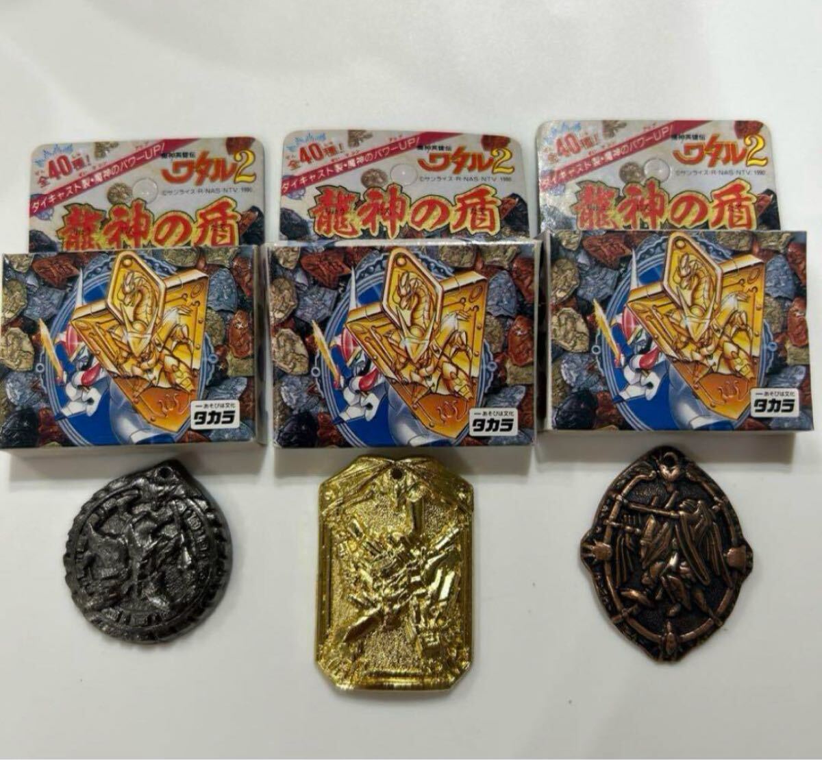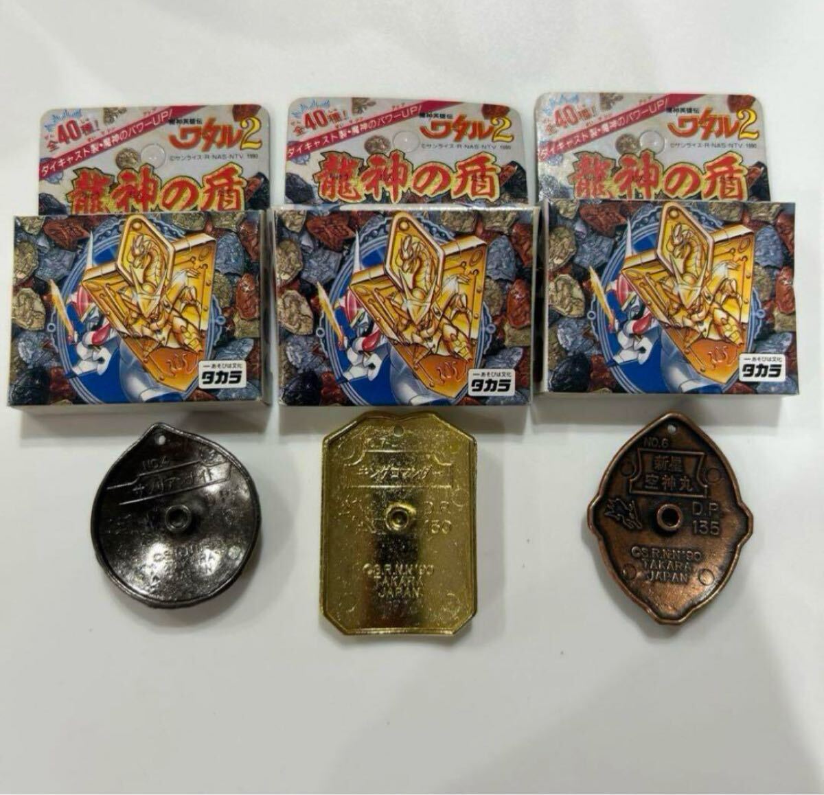 当時タカラから販売された魔神英雄伝ワタル2の第1弾、龍神のダイキャスト製盾。古い商品なので外箱に多少ダメージが有りますがご理解の程よろしくお願いします。箱の中で保管していたため、商品を綺麗です。