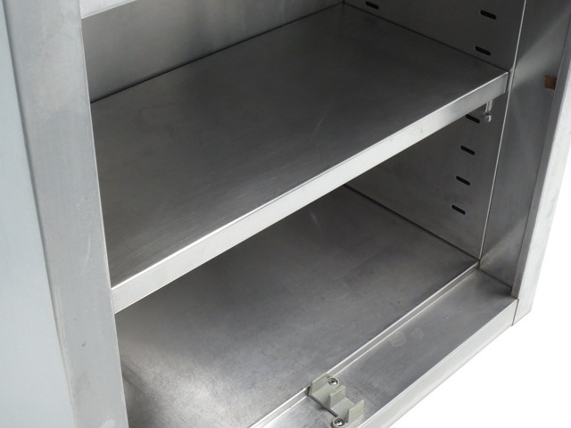 【商品説明】 ★【食器用】【工具の収納】【小物置き】等にご利用いただけます。 ★上質なステンレスで出来ていますので【耐食性】【耐熱性】【耐久性】に優れております。 ★扉は狭い厨房内で使用が楽なスライド式となっております。 ★棚板は取り外しと高さ調節が可能です。 ※取り付け用のビス類は付属しておりません。 【状態:中程度★★★☆☆】 『※』[すり傷][シミ][サビ]等の使用感が見受けられます。 『商品詳細』