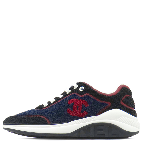 | シャネル CHANEL スニーカー パイル レザー ネイビー×ブラック×レッド黒 紺 赤 G36256 #36 レディース 【箱】定番 人気 美品 中古 | |