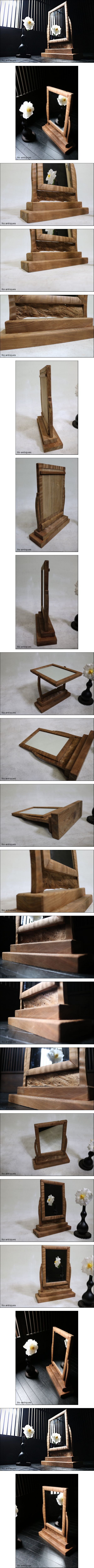 | 商品説明 | 古い鏡、松木地仕上げ卓上鏡です。 時代は大正~昭和の物です。 このお品は、木の枯れた風合いが良く和洋折衷な感じがモダンな良いお品です。 材は、松材にて作られています。 のぞきは木のコブのような板が付けられています。 鏡は角度を変えられます。 また、鏡を強く下から押すと裏板を外す事ができ鏡を外しガラスを入れればスタンド額にもなります。 綺麗にクリーニング済ですので直ぐにご使用出来る状態です。 モダンな作りが良い感じの卓上鏡、お薦めです。 是非ご検討下さいませ。 《サイズ》 約32㎝(横)×約40.5㎝(縦)×約10.3㎝(奥行) |