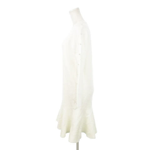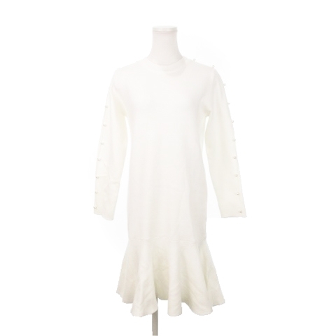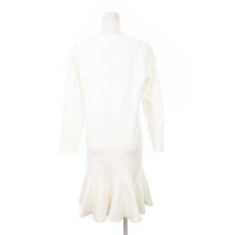 バースデーバッシュ BIRTHDAY BASH ニットワンピース ミニ 長袖 パール装飾 裾フレア ハリ感 S 白 ホワイト /AH20 レディース