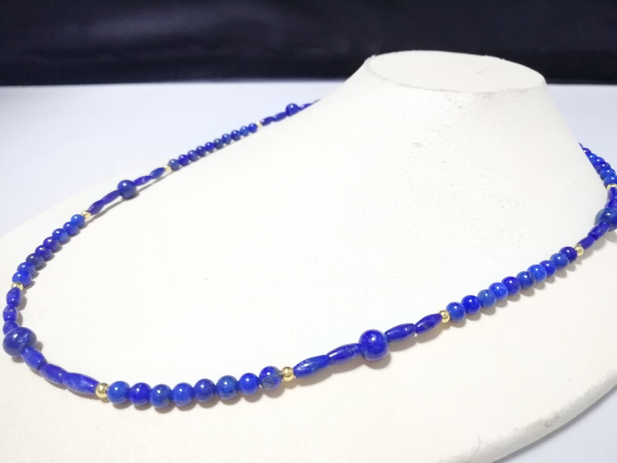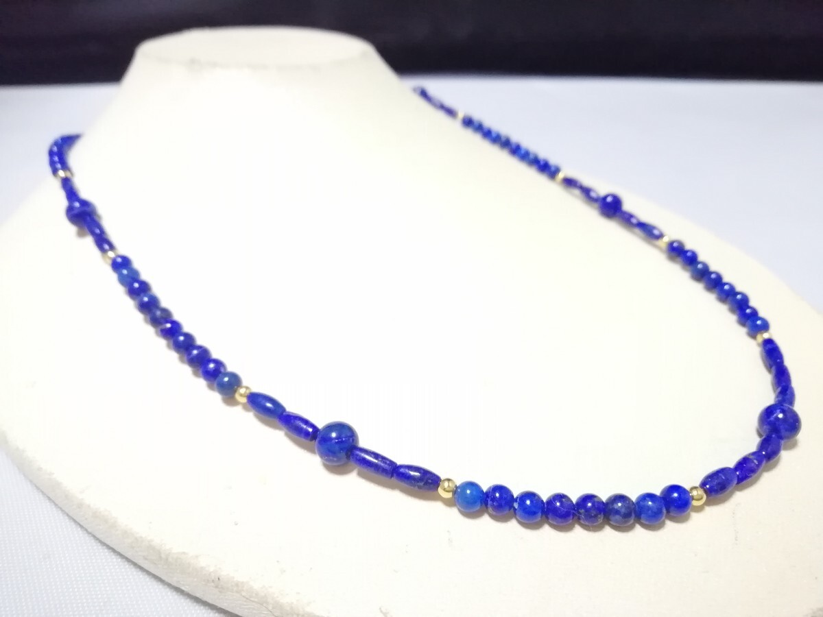ハイグレード天然ラピスラズリステ−ションディザインネックレス