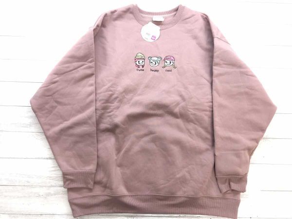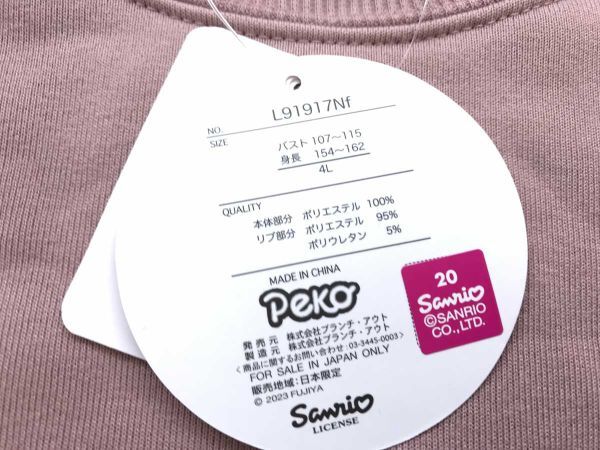 新品タグ付き Peko 不二家 ペコちゃん Sanrio キャラクター刺繍 レディース 裏起毛 長袖スウェットトレーナー 大きいサイズ 4L ピンクです。