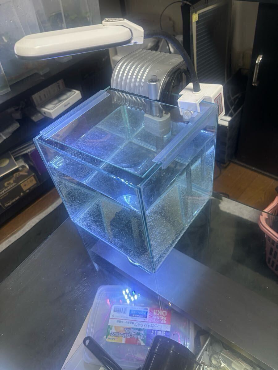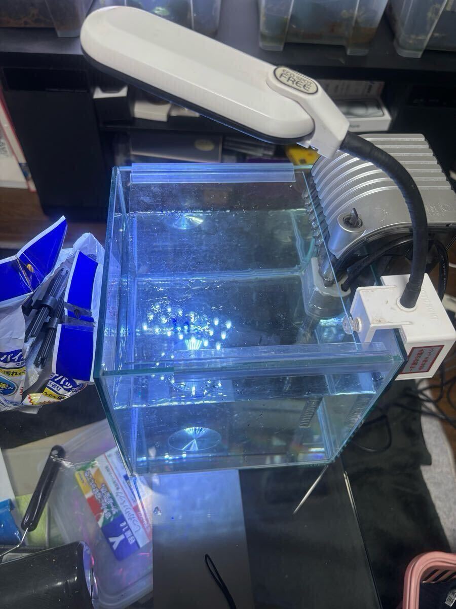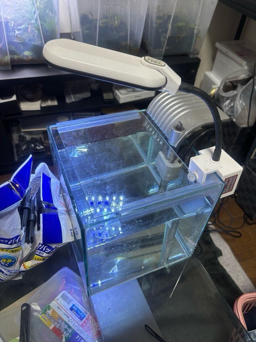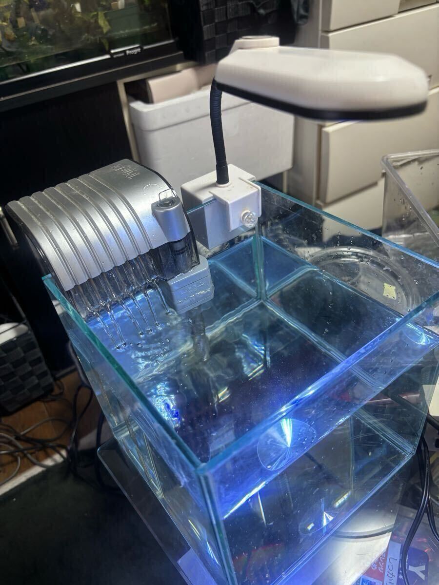 先日までベタの稚魚用に使っていました。出品に伴い、水のみセットしましたが、写真の通り、漏れ等はなし、フィルターも可動、ランプも玉切れナシです。