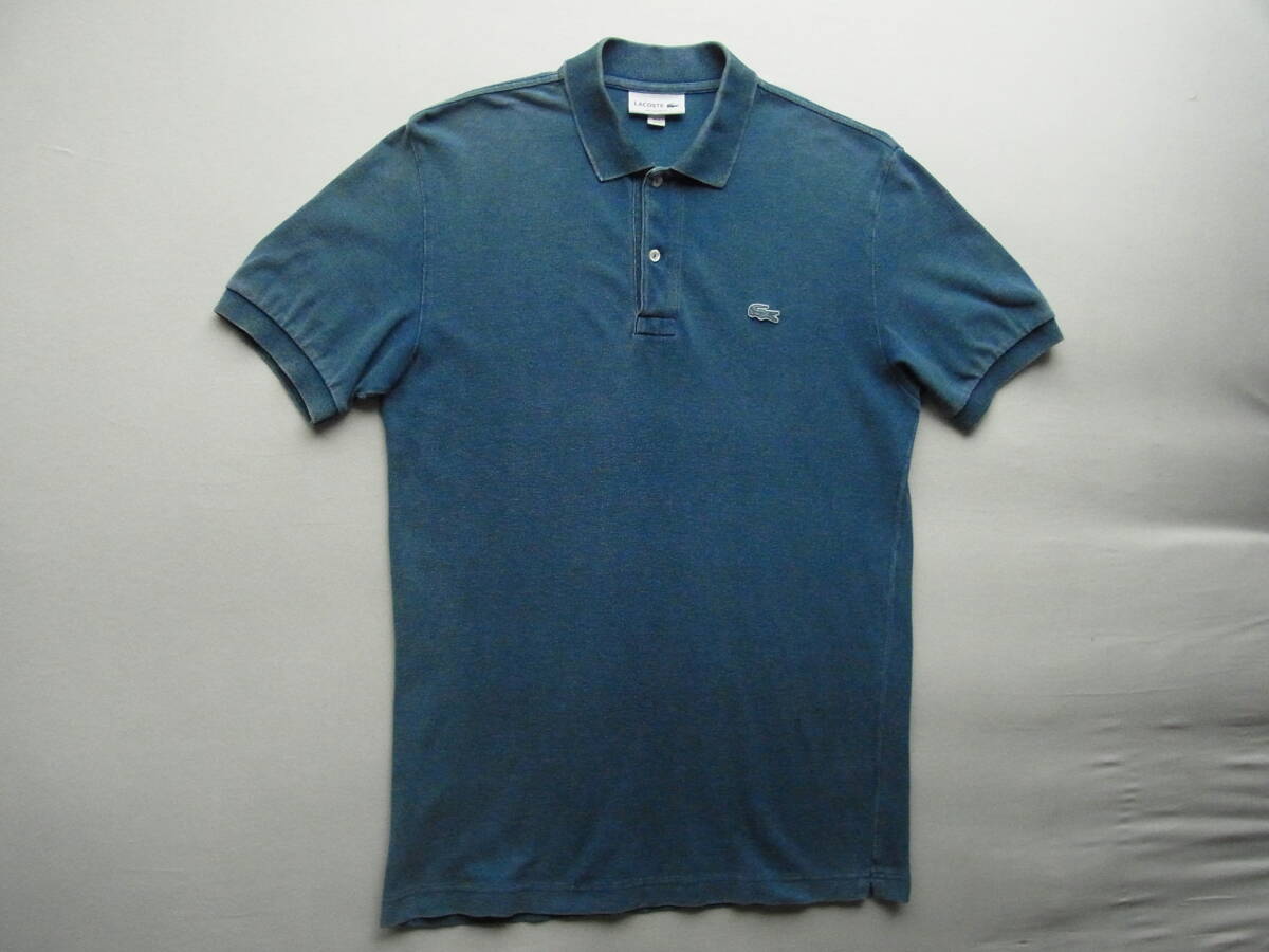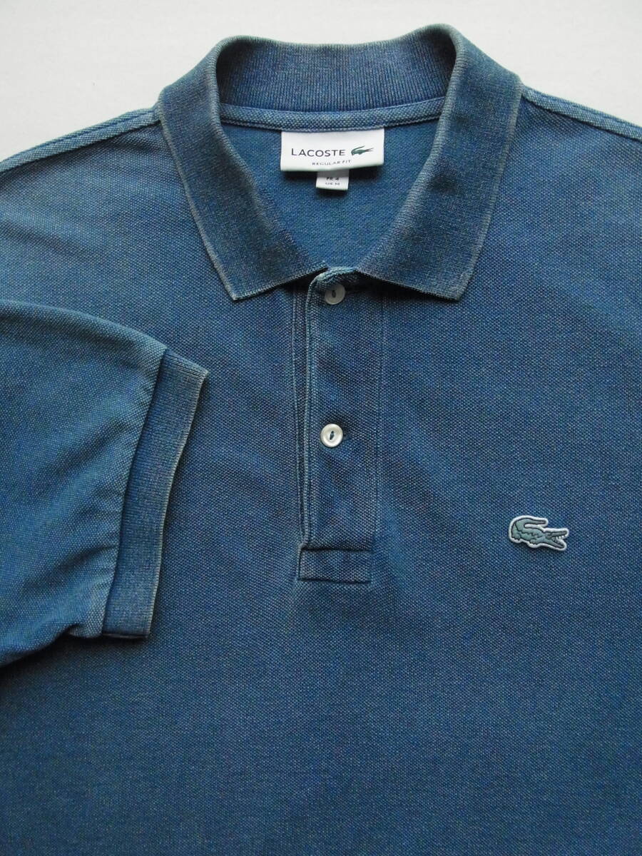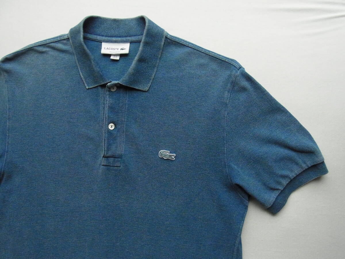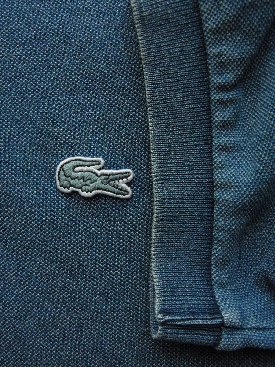 ラコステのコットン鹿の子素材でインディゴ染め、ユーズド加工のポロシャツになります。USEDで着用感とインディゴ染めのユーズド加工の為、画像の様な色褪せが御座います。それ以外には特に目立ったダメージ等は御座いません。