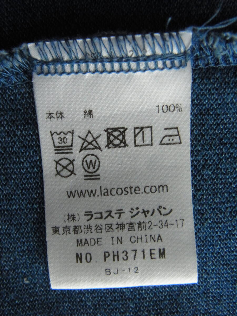 LACOSTE ラコステ コットン鹿の子素材 濃色インディゴ染め ユーズド加工 ポロシャツ サイズ 4 型番 PH371EM