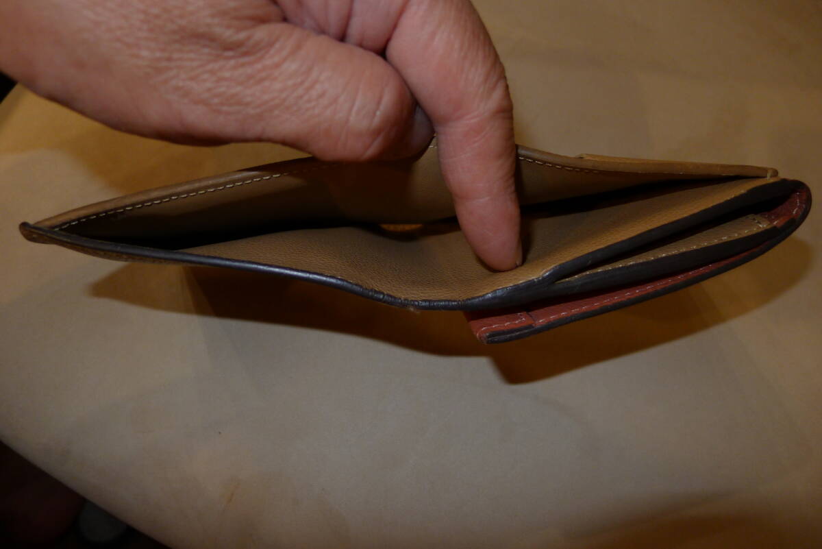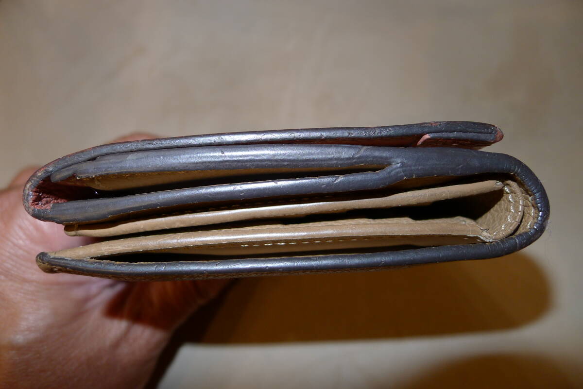 外装に僅か折れ部にコパひび割れ等ありますが、コインポケット内の汚れも少なく、全体的には綺麗な方だと思います。