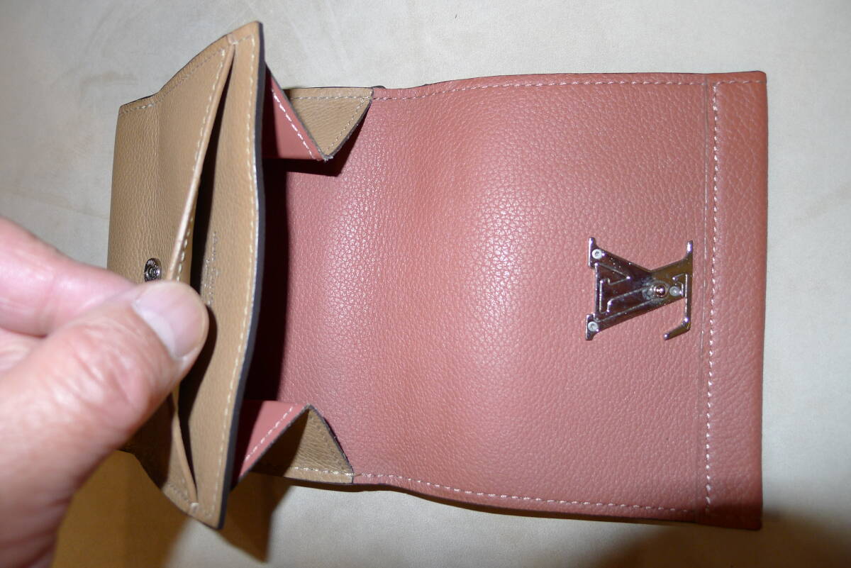 ルイ・ヴィトン LOUIS VUITTON 「ロックミー LOCKME」 ライン ユニセックス 男女兼用 女性用 レディース LADY’S 男性用 メンズ MENS カーフレザー 皮革素材 Wスナップボタン開閉式 三つ折り 小銭入れ コインポケット 付き コンパクト 小型 財布 ウォレット  「ポルトフォイユ・ロックミー Ⅱ コンパクト