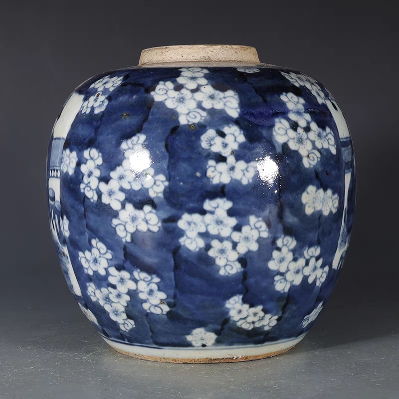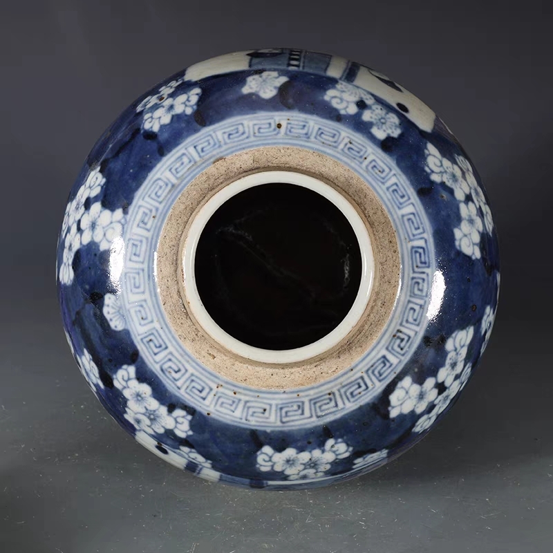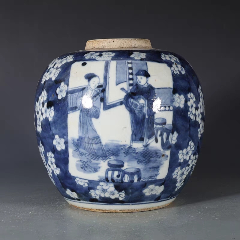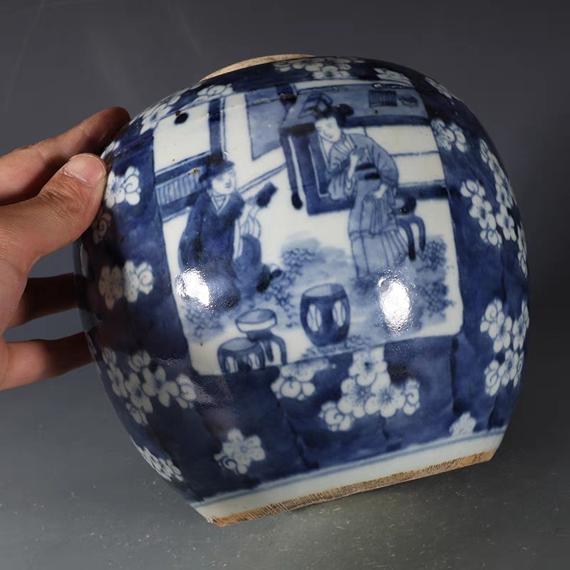 清時代 康熙年製款 古陶磁器 青花 人物故事紋 罐 罐子 文案置物 磁器 擺件 時代物 古董品 骨董 旧家蔵出 唐物 中国古玩 古美術品
