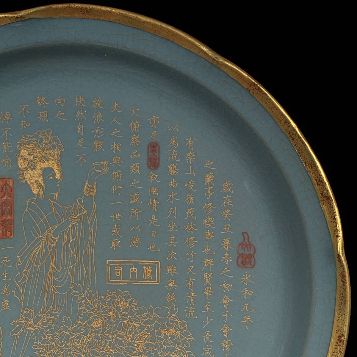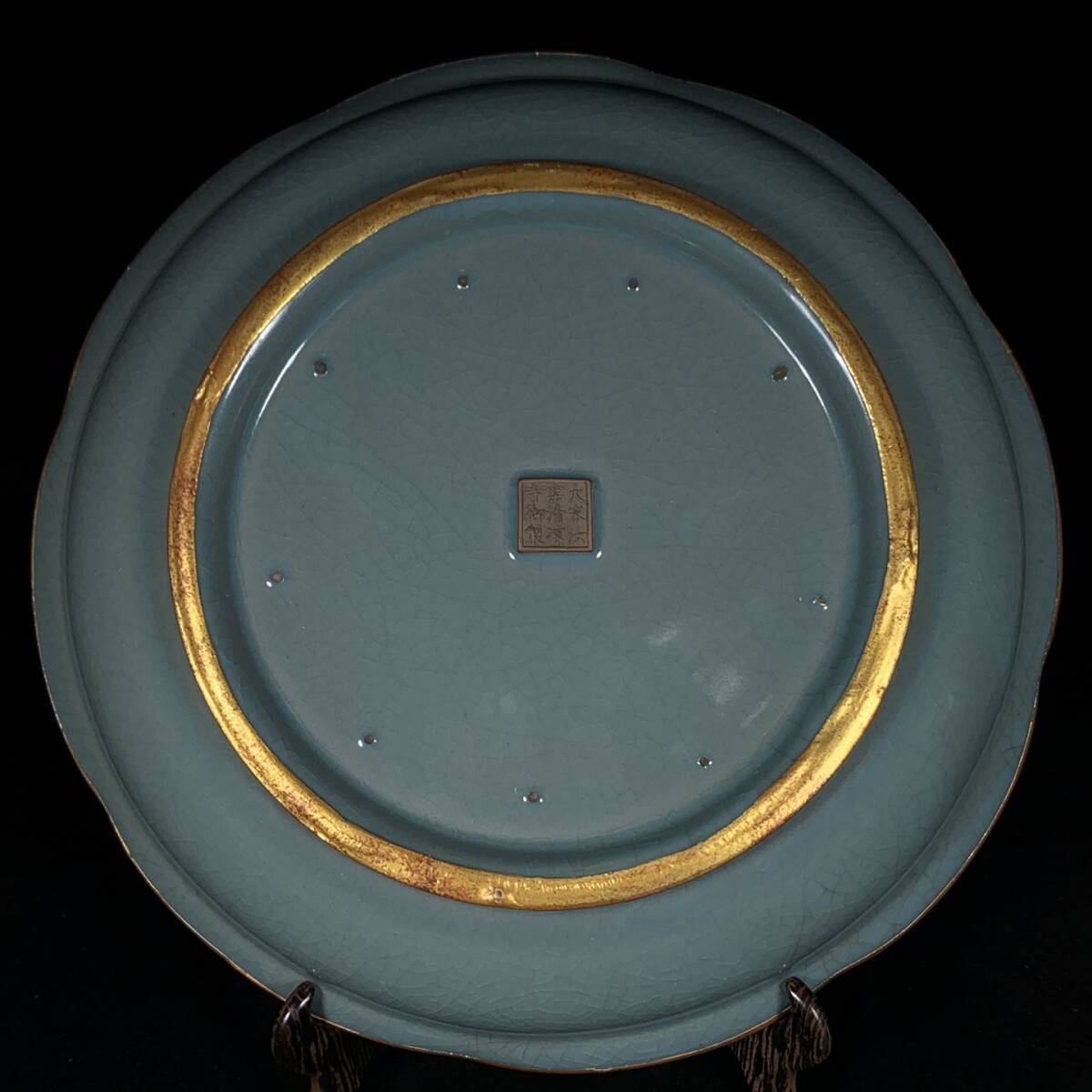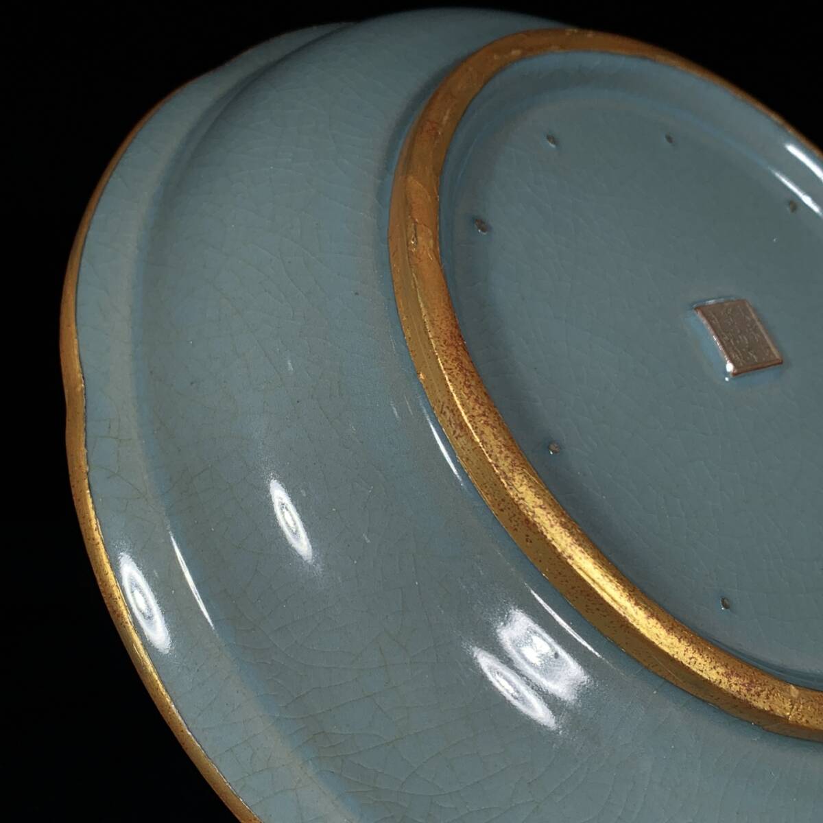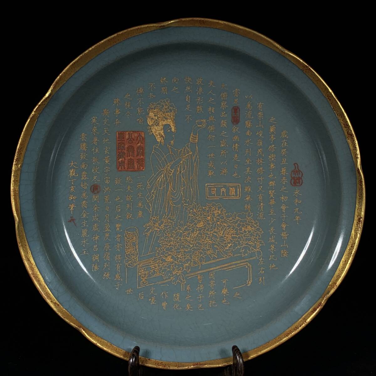 *珍品旧蔵* 宋 汝窯 包口銘文 刻仕女紋 花口盤 陶芸 古陶磁器 極細工 唐物 中国古玩 骨董品 古美味 H46