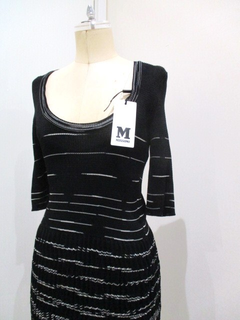 イタリア製 ミッソーニ M MISSONI ニットワンピース 黒白 送料無料