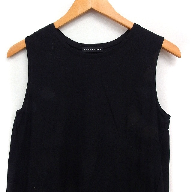 エストネーション ESTNATION バックスリット タンクトップ 丸首 無地 コットン 綿 38 ブラック 黒 /FT31 レディース