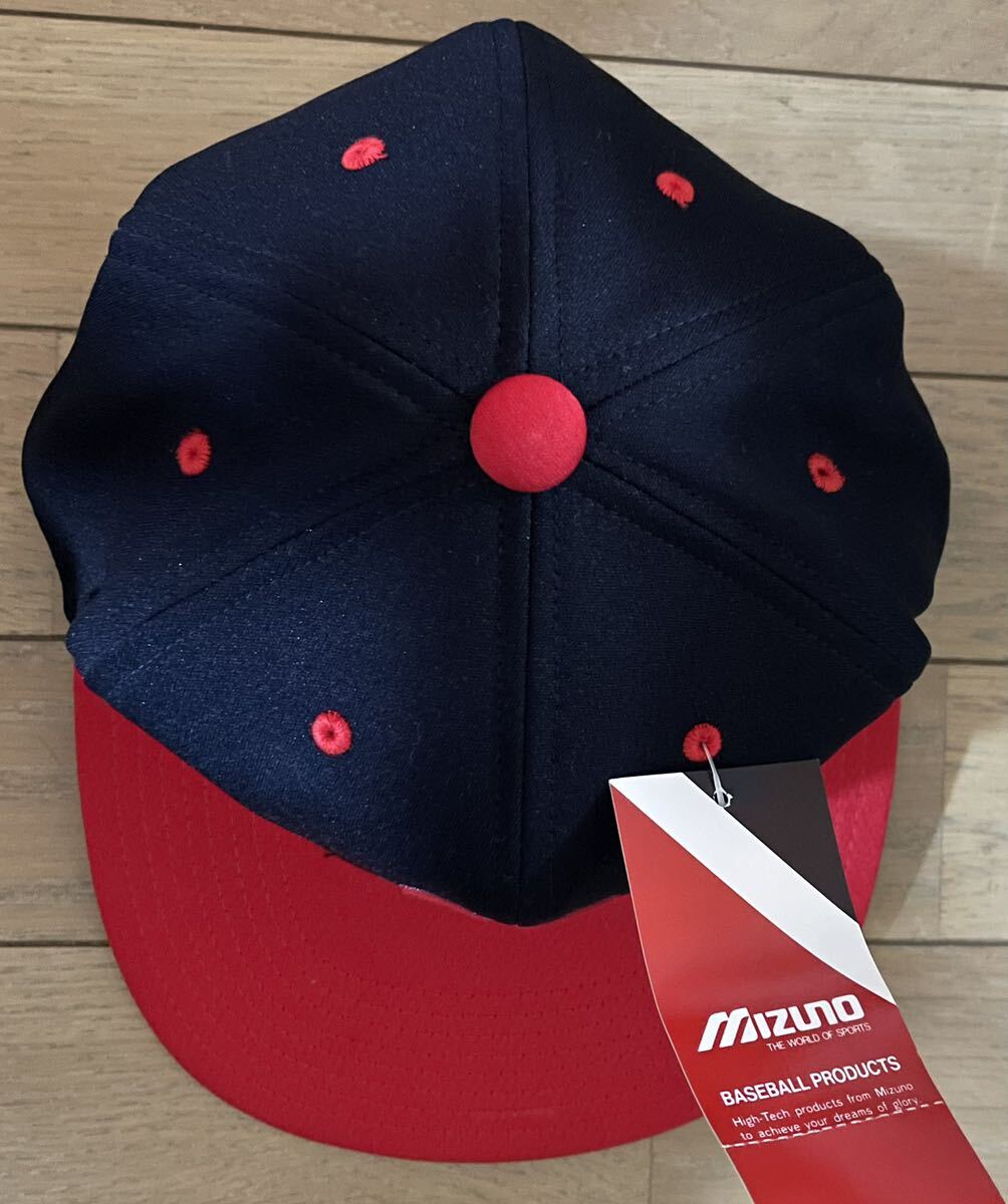 紺 赤 日本製 MIZUNO ミズノ 美津濃 オールド 高校野球 野球帽 L ベース ボール キャップ アメリカン スタイル ビンテージ 古着 昔 昭和