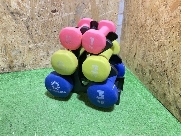 Primasole プリマソーレ カラーダンベル 1Kg×2/2Kg×2/3Kg×2/計12Kg 台付き 「TS20641」