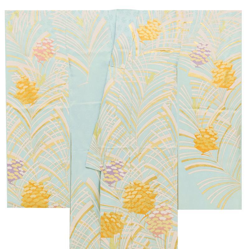 | ★品質・詳細 | ○地色 【こちらの地色は白味の古典青緑色系です。】 ○絹織物 ○新品・未仕立の特撰振袖の仮絵羽です。 ○参考上代 1,380,000円 |