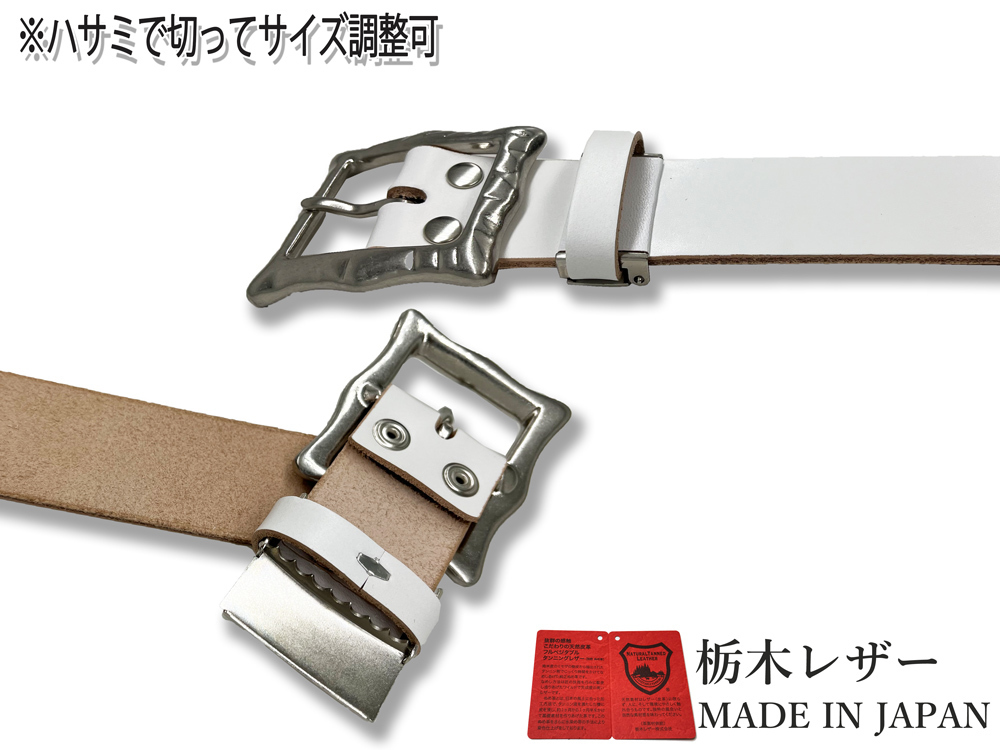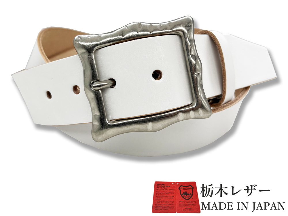 新品 栃木レザーベルト Mサイズ 40mm 本革 牛革 メンズ レディース 国産 無地 レザー カジュアル 紳士 通勤 白色 ホワイト w071-M-WH
