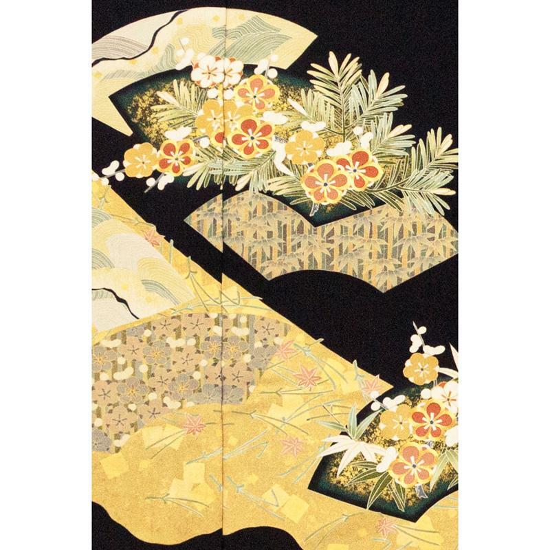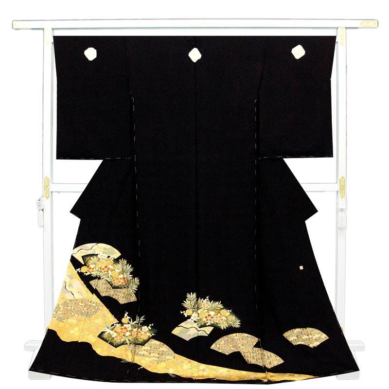 | ★商品説明 | ■京友禅美術手描き染めで多彩な金彩加工を用い豪華に制作された黒留袖です。 ■第一礼装としの格式と華やかさを考えデザインされた正倉院吉祥扇面図を描いています。 ■伝統工芸士の丁寧な物作りの逸品が高いお席での一格上の着姿を応援します。 |