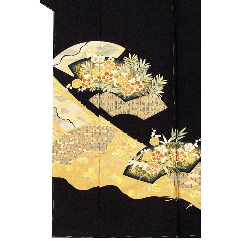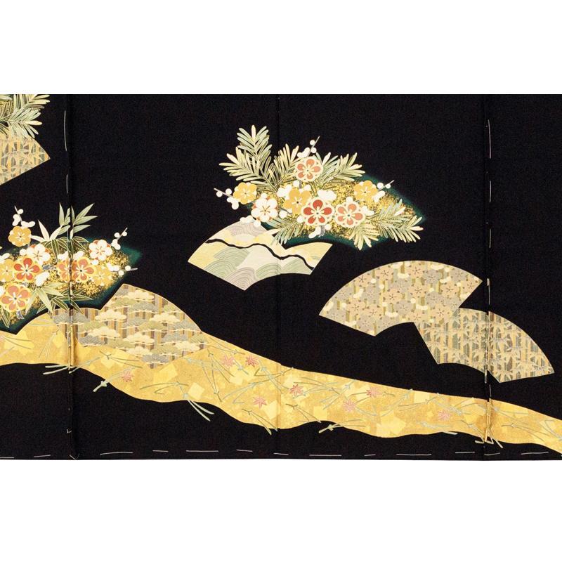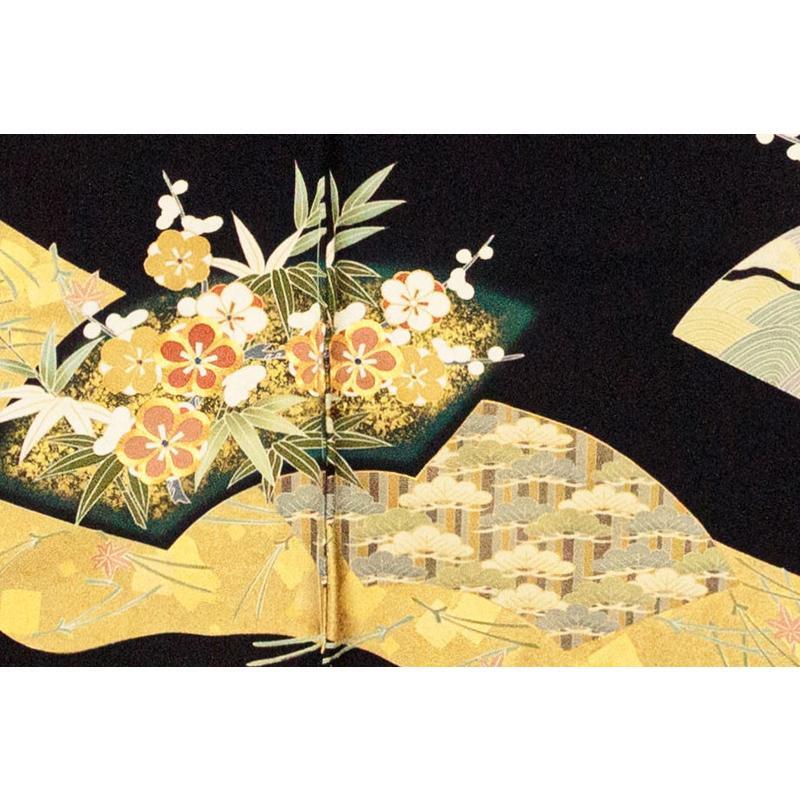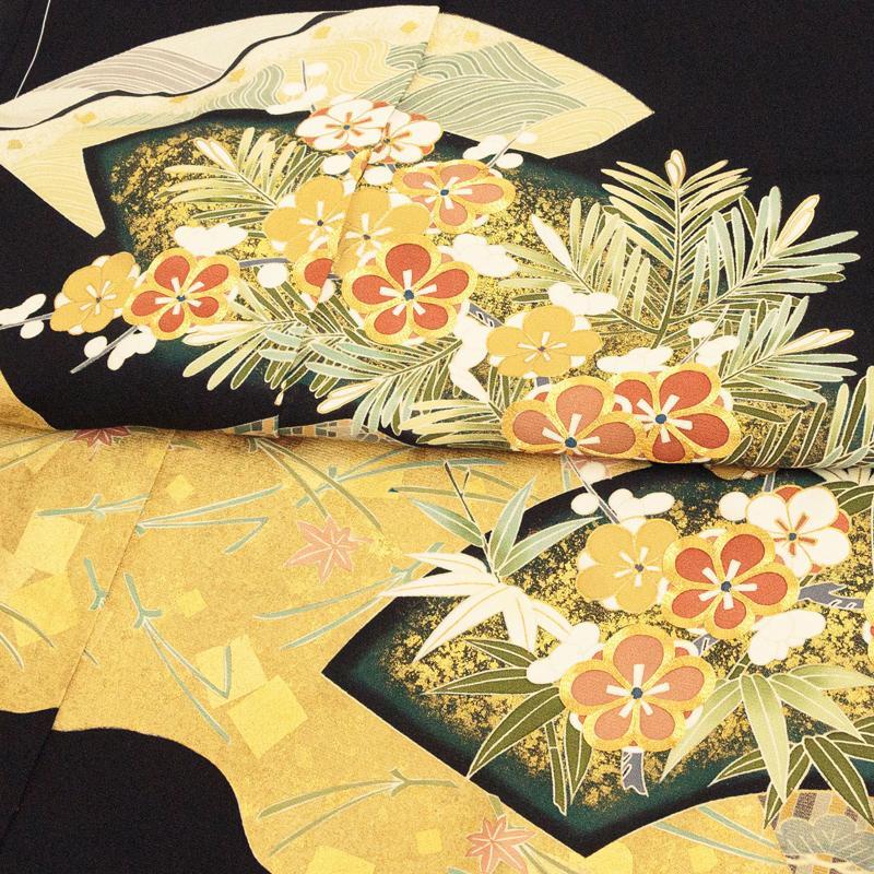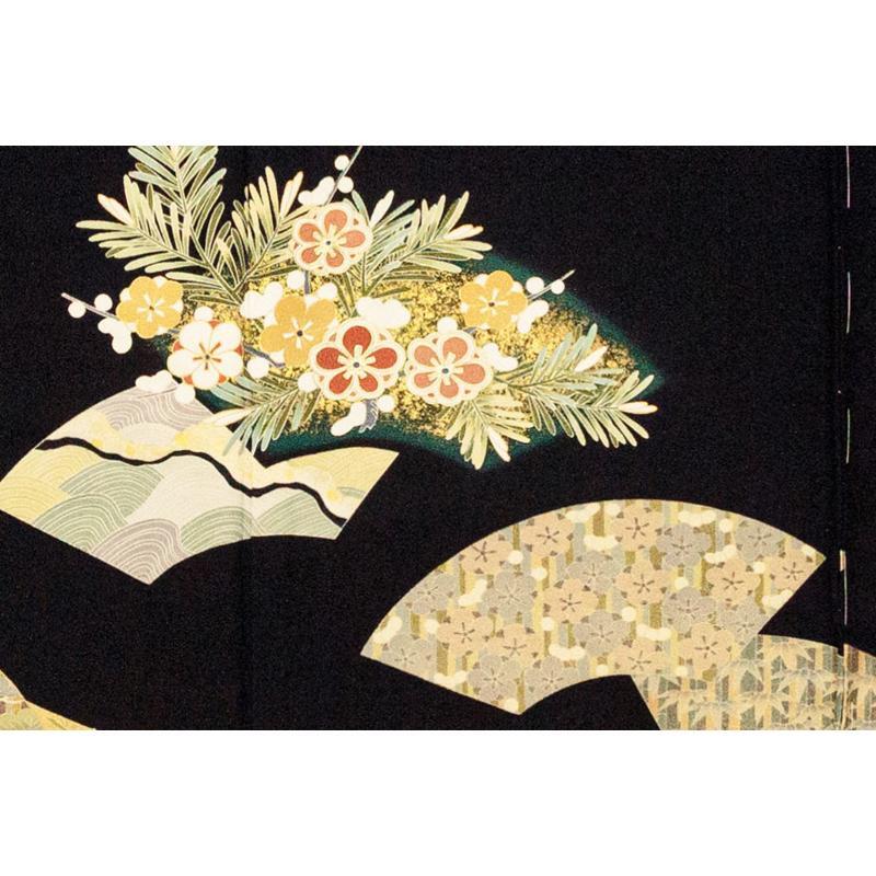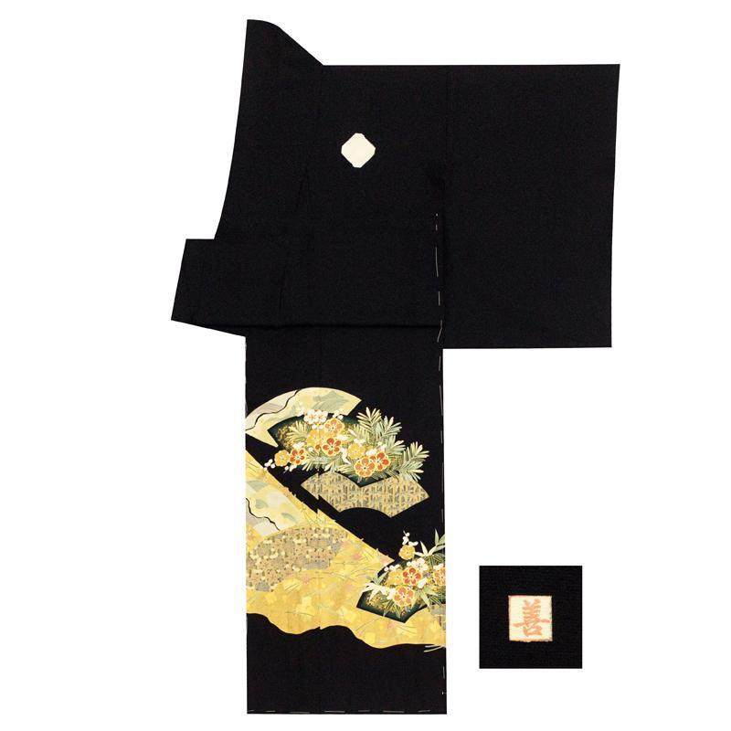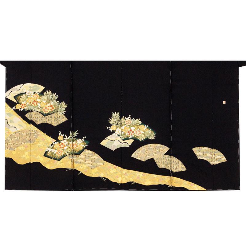| ※記念感謝祭【仕立無料】京友禅手描美術礼装黒留袖☆特撰正倉院吉祥扇面図☆本金彩、金駒刺繍、伝統工芸士落款入 |