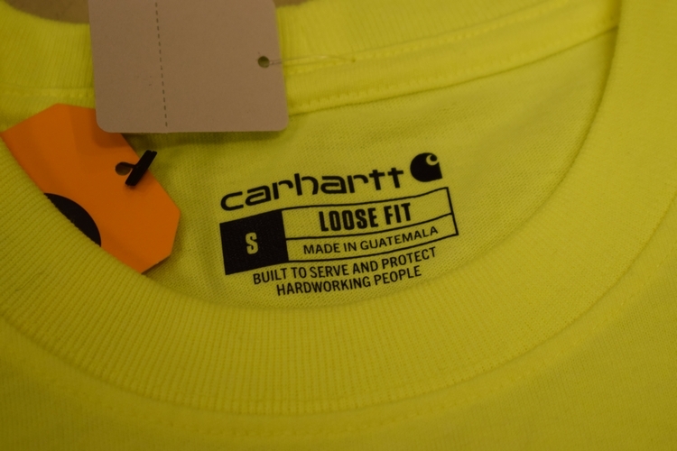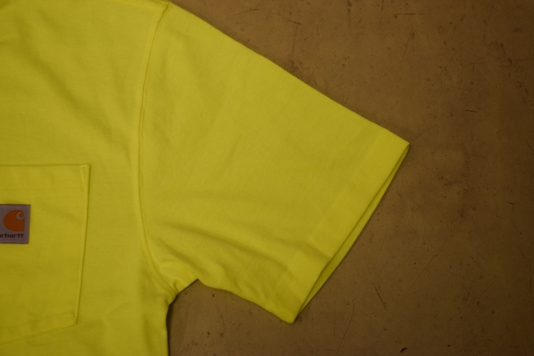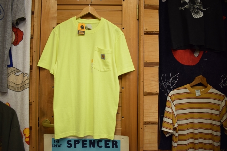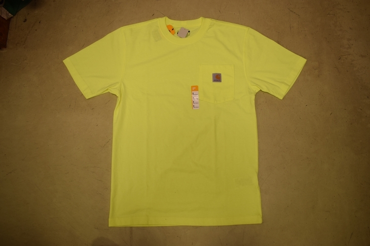 デッドストック品グッドカラーCARHARTTカーハート半袖クルーネック無地ポケットTシャツS蛍光色アメカジワークストリート未使用品x763