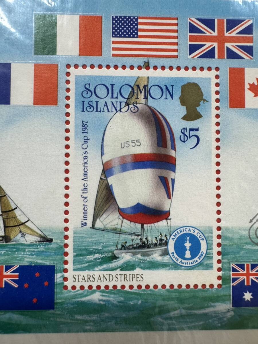 外国切手 ソロモン諸島 1987 星条旗 アメリカンカップ優勝記念シート 同封可能 MK1033