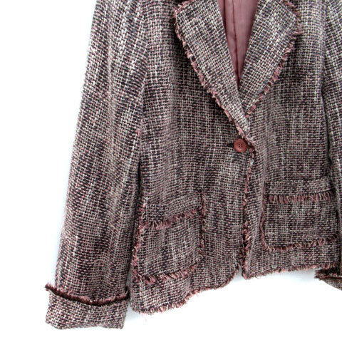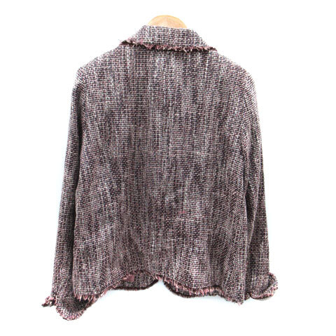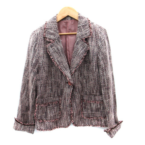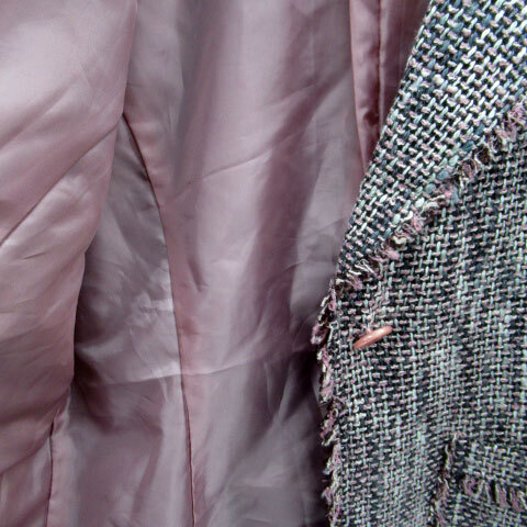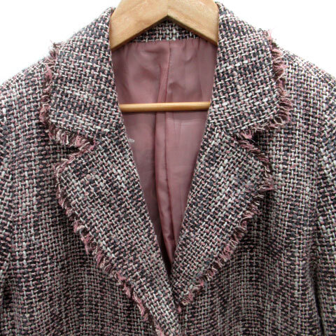 アスプリ ASPRI ツイードテーラードジャケット ミドル丈 フリンジ シングルボタン 総裏地 11AR マルチカラー ダスティピンク グレー
