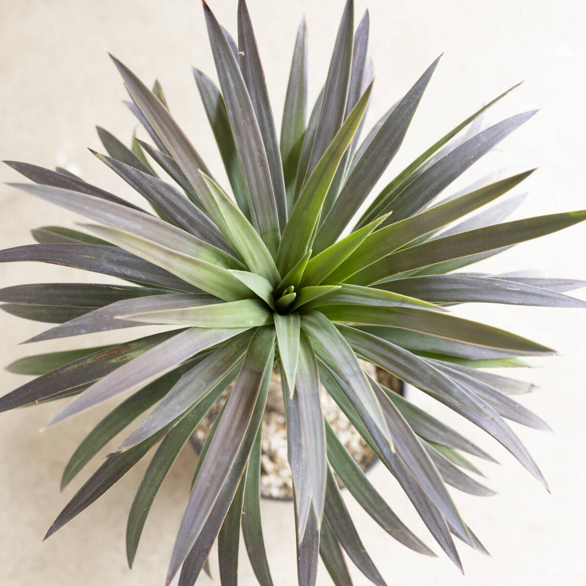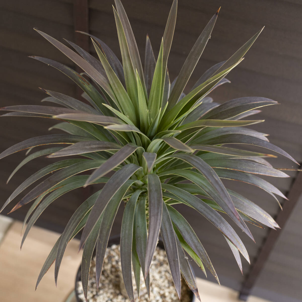 放射状に垂れ下がる青みを帯びた葉が美しく、寒さにあたると段々と葉が赤みを帯びます。