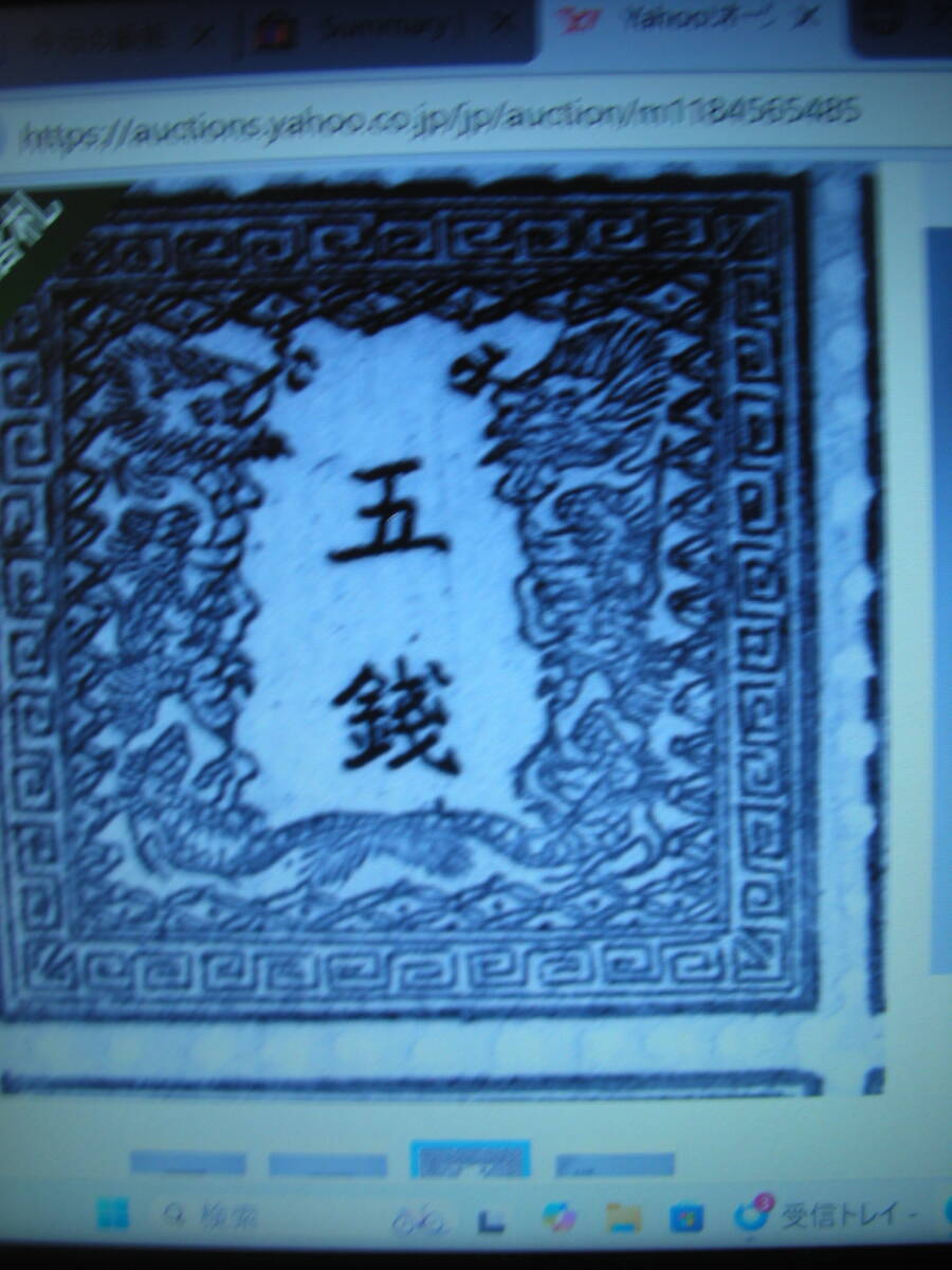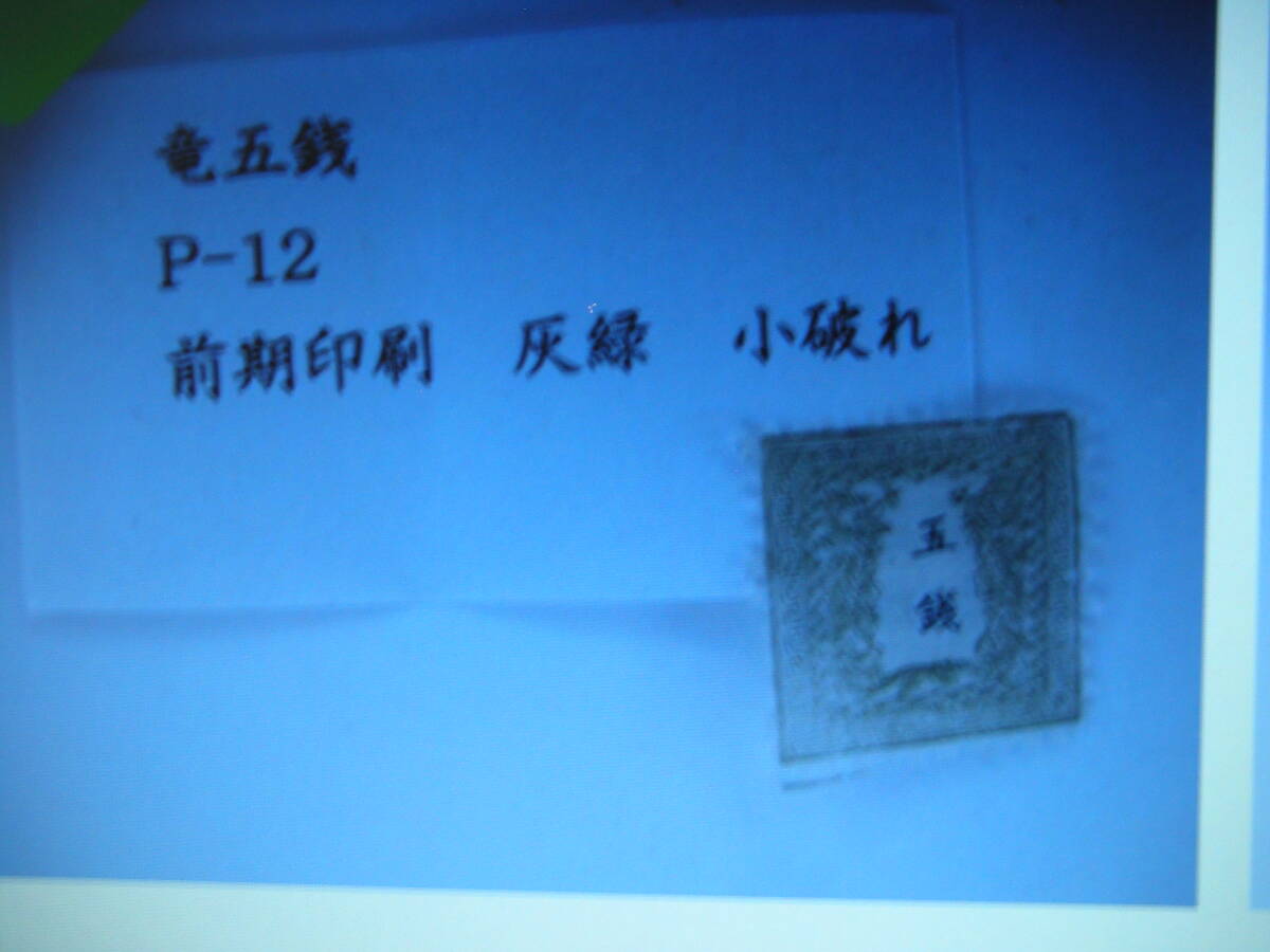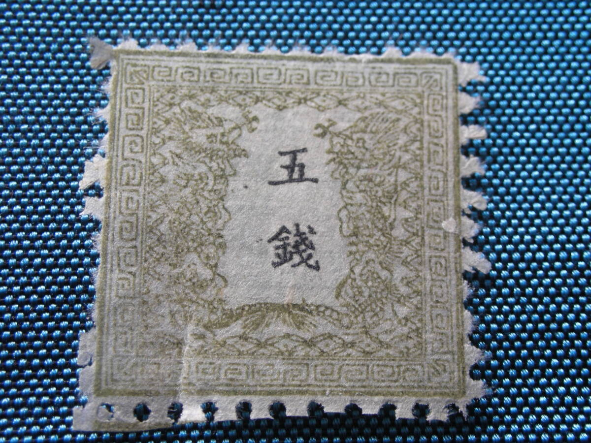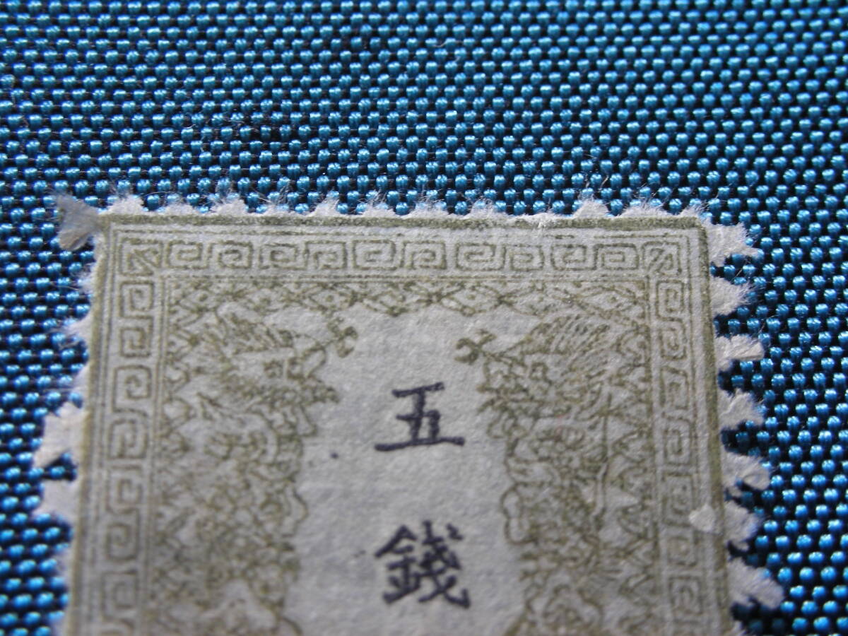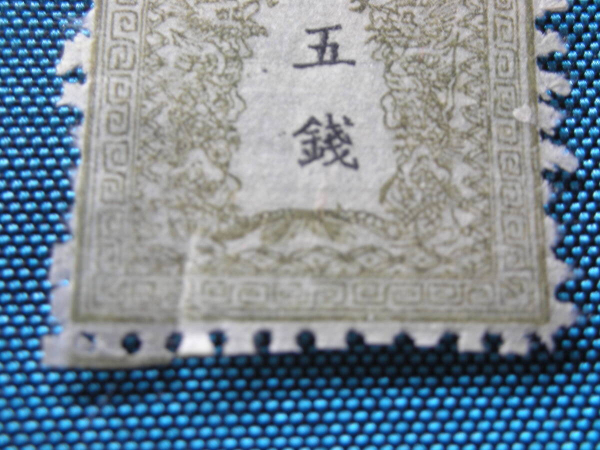 手彫り 竜切手 5銭 青緑 左下部破れあり、ポジション12(写真参照)未使用  鑑定書無し