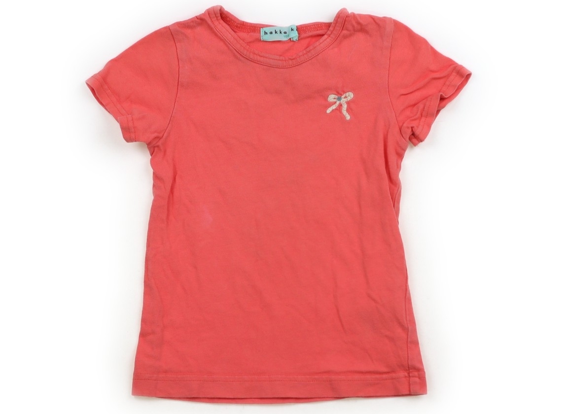 全体に毛羽立ちがあります。洗いざらし感があり、前身頃に薄い色落ち、複数の点シミがあり、襟元に色褪せがあります。品質タグにシールはがし跡のノリ残りあり。