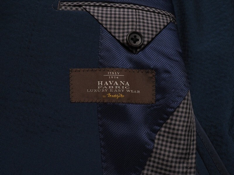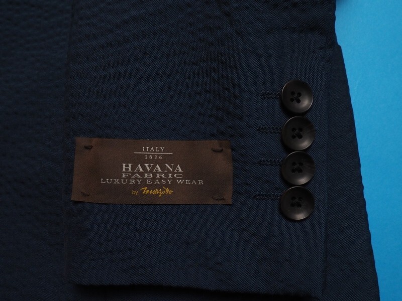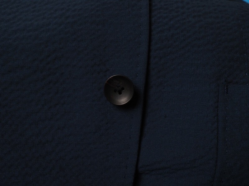 AMFステッチなど、百貨店向けならではの上級仕立てで仕上げられております。ファブリックはイタリア最大規模の老舗メーカー、マルゾット社の生地HAVANA FABRICを使用。ラグジュアリーなテイストとリラックス感の、双方が薫るシアサッカー生地です。上下セットでも単品でも着まわしやすい一着です。