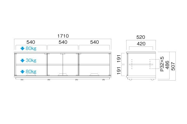 ●外形寸法:幅 1710 × 奥行き 520 × 高さ 507 (mm)質量:約69kg