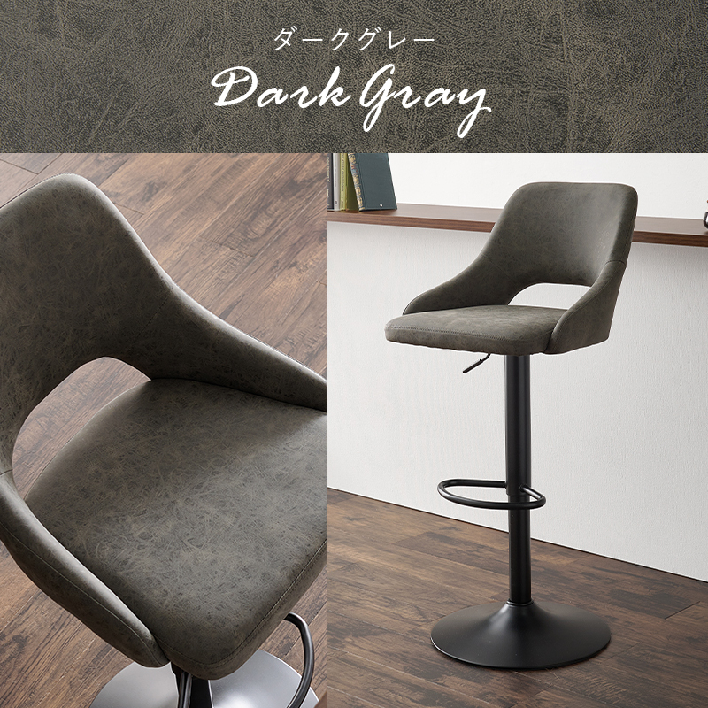 マットな質感のヴィンテージ調の張地を使用した昇降式カウンターチェア。