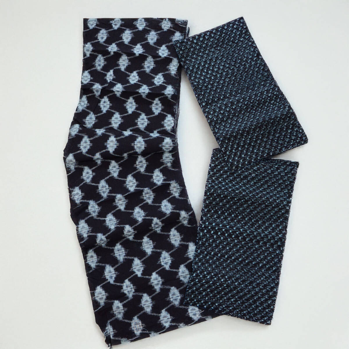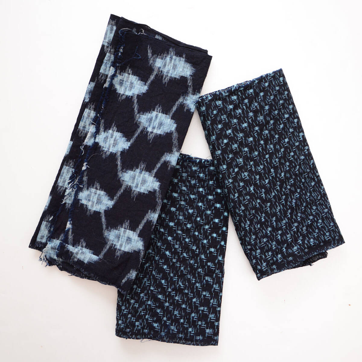 藍染の絣模様が印象的な、木綿古布の端切れセットです。