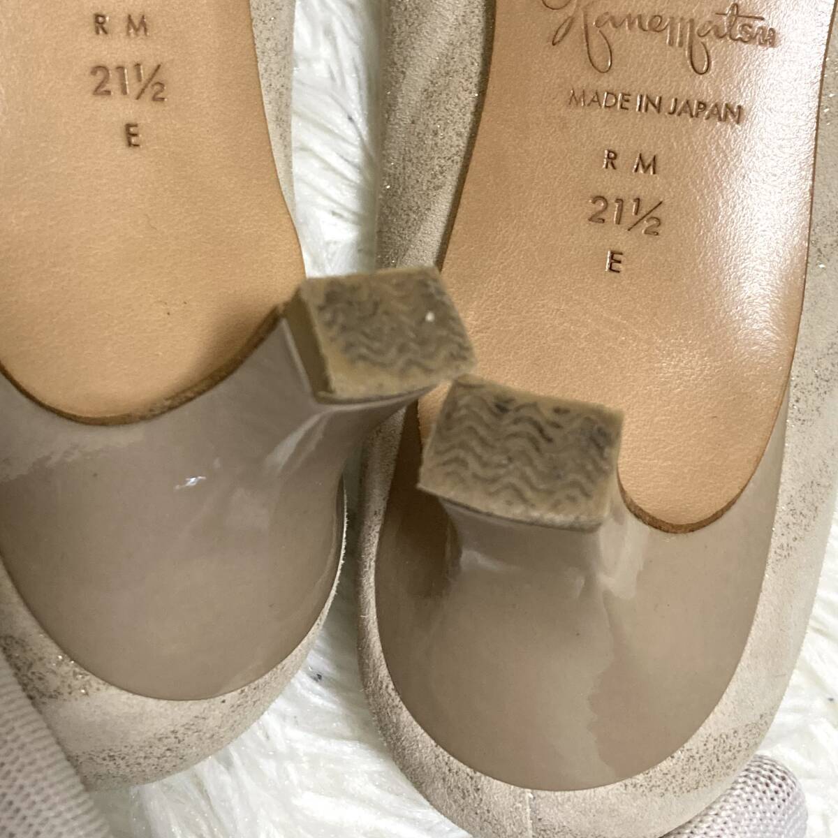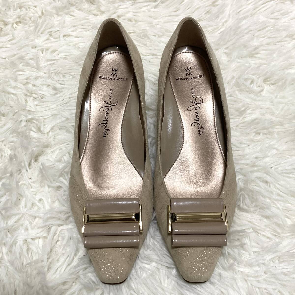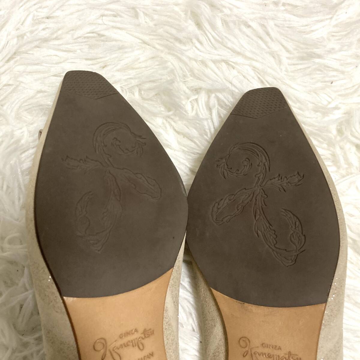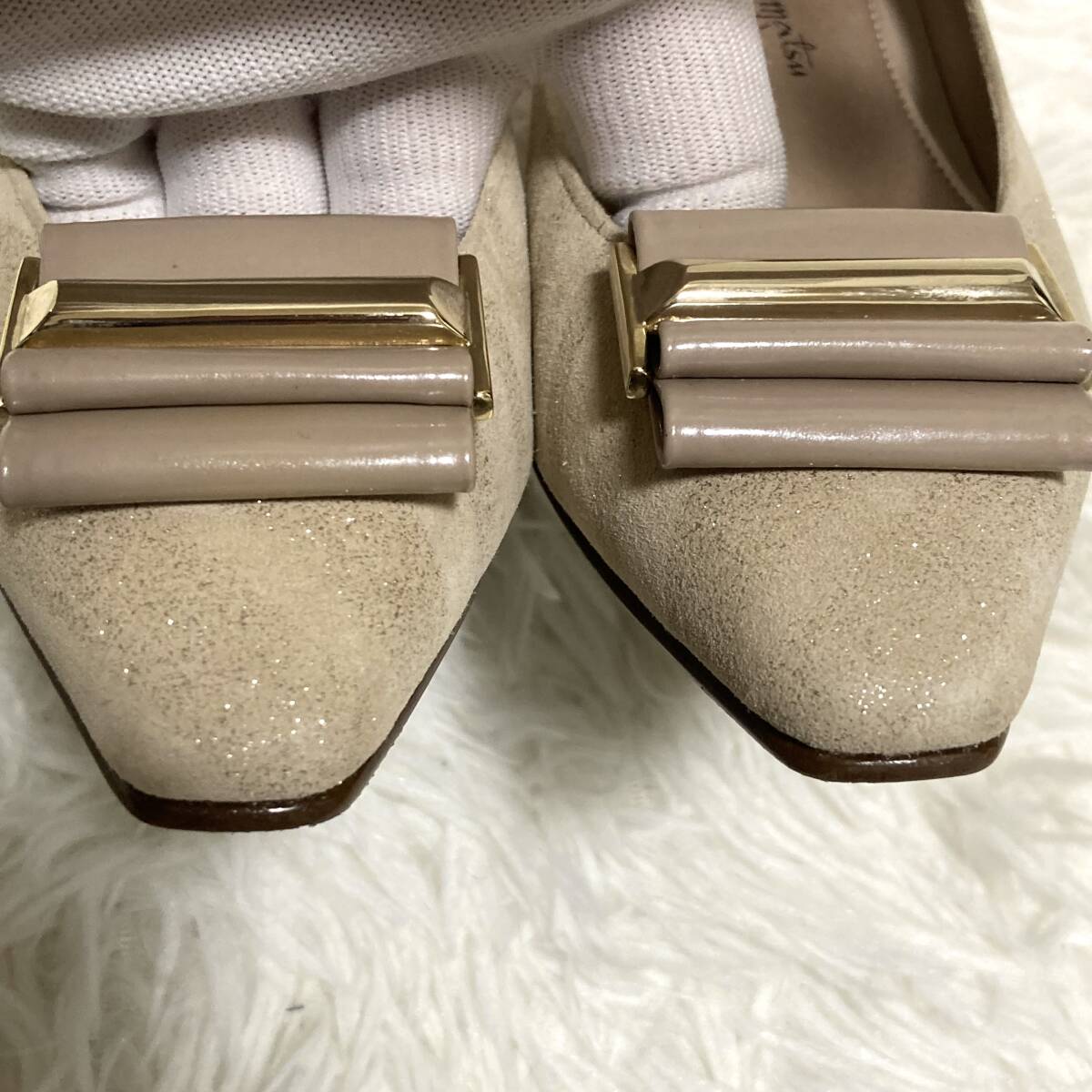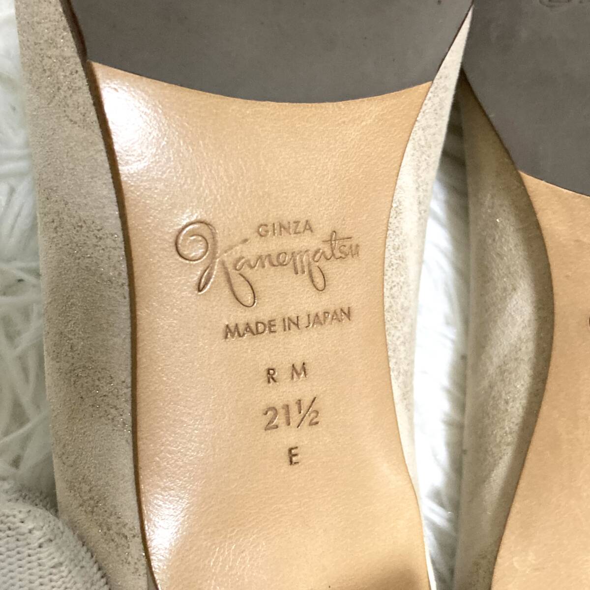★即決★送料無料★匿名発送★美品★ 銀座かねまつ Kanematsu パンプス 21.5㎝ バックル ラメ入り スウェード ベージュ