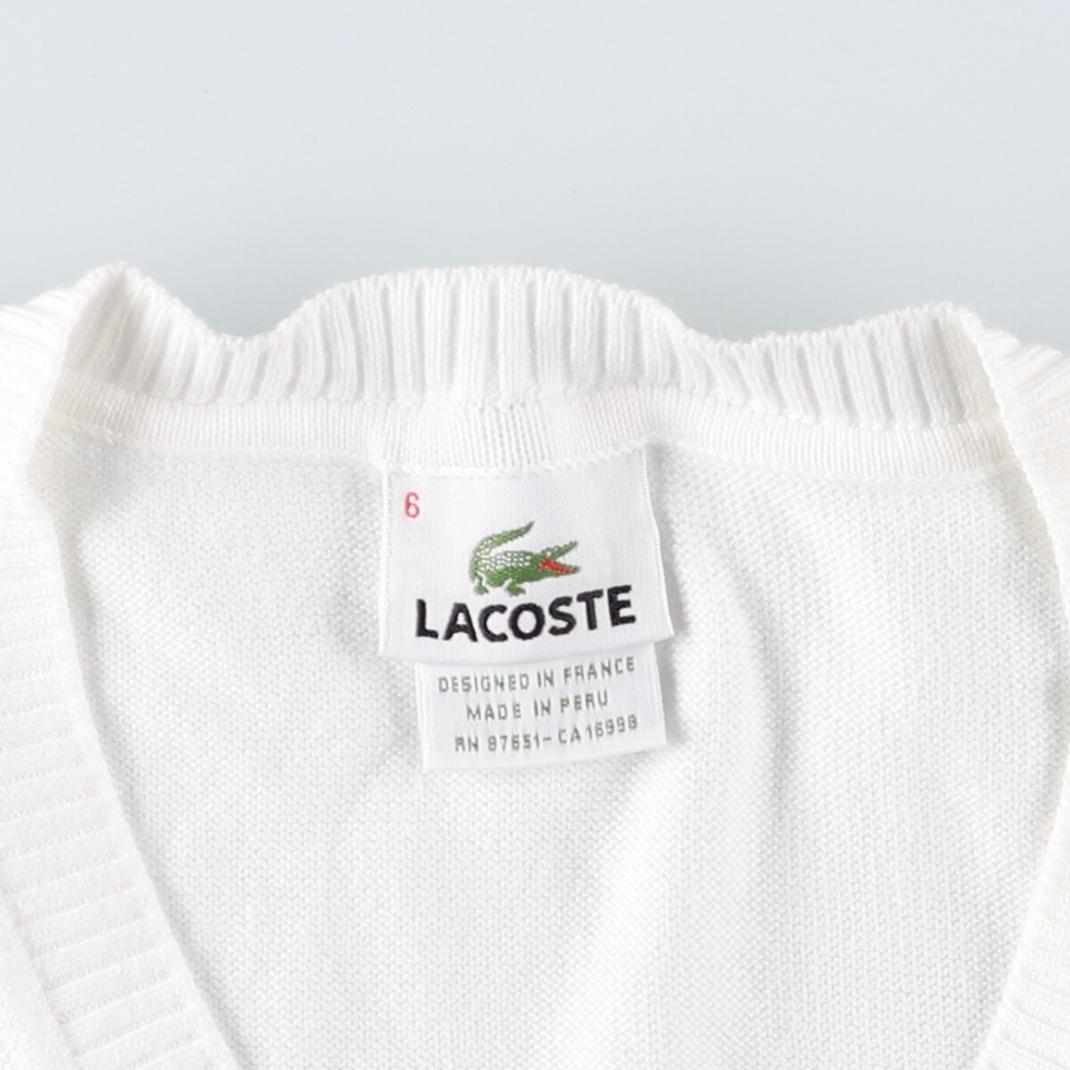 商品名: 古着 ラコステ LACOSTE フランス企画 Vネック コットンニットベスト 6 メンズXL相当 /eaa390105 【中古】 【241213】 ブランド: LACOSTE ラコステ 特徴: Vネック モデル/形状: フランス企画 / Vネック コットンニットベスト 素材: コットン:100% 色: ホワイト系 白色 柄: 無地 / ワンポイント 生産国: ペルー製 年代: - カテゴリ: メンズ ベスト ニットベスト 商品番号: eaa390105 | |