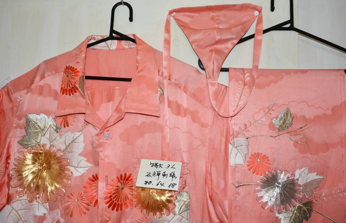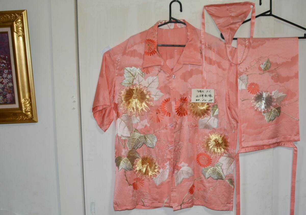 高級友禅・刺繍の絹から、1点物のアロハシャツを作っています。  残りのハギレも無駄にしないで、越中&黒猫褌に。
