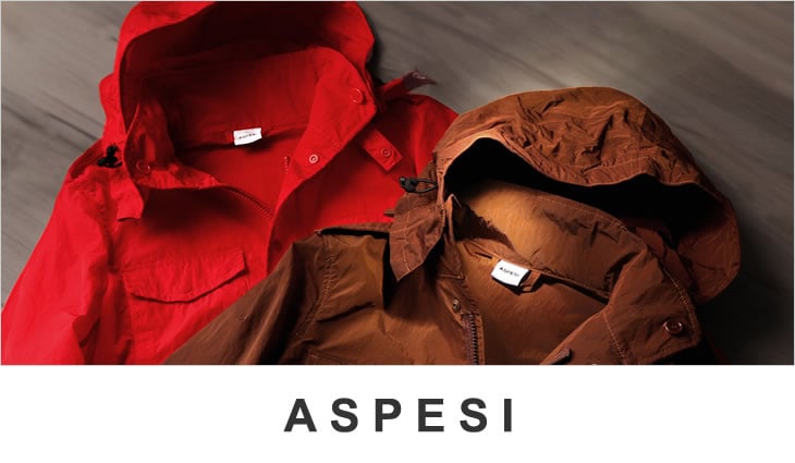 1969年、アルベルト・アスペジ氏により、シャツメーカーとしてイタリア・ミラノで誕生した「ASPESI(アスペジ)」。良質なシャツで名を馳せた後、アイコンともいえるミリタリーの機能美をモダンに昇華したフィールドジャケットを発表。ワークやミリタリーのスタイルをファッションに取り入れたパイオニア的存在となります。¨最上級の普段着¨をキーワードにトータルブランドとして成長した現在も、イタリアを代表するブランドとして世界中の人々を魅了し続けています。