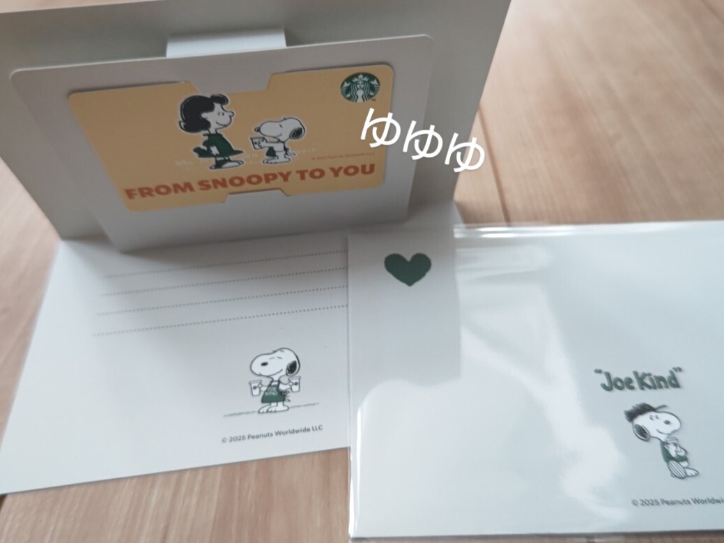 スターバックスカードには、LUCYにコーヒーをサーブするSNOOPYと、メッセージ“FROM SNOOPY TO YOU”を、付属のメッセージカードには、JOE KIND SNOOPYがデザインされています。