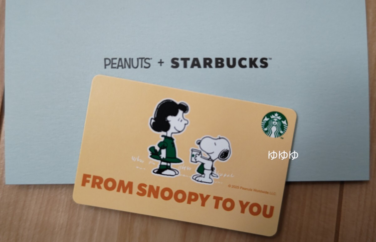 PEANUTSとコラボレーションしたスターバックス カードとメッセージカードがセットになっているカードギフトです。
