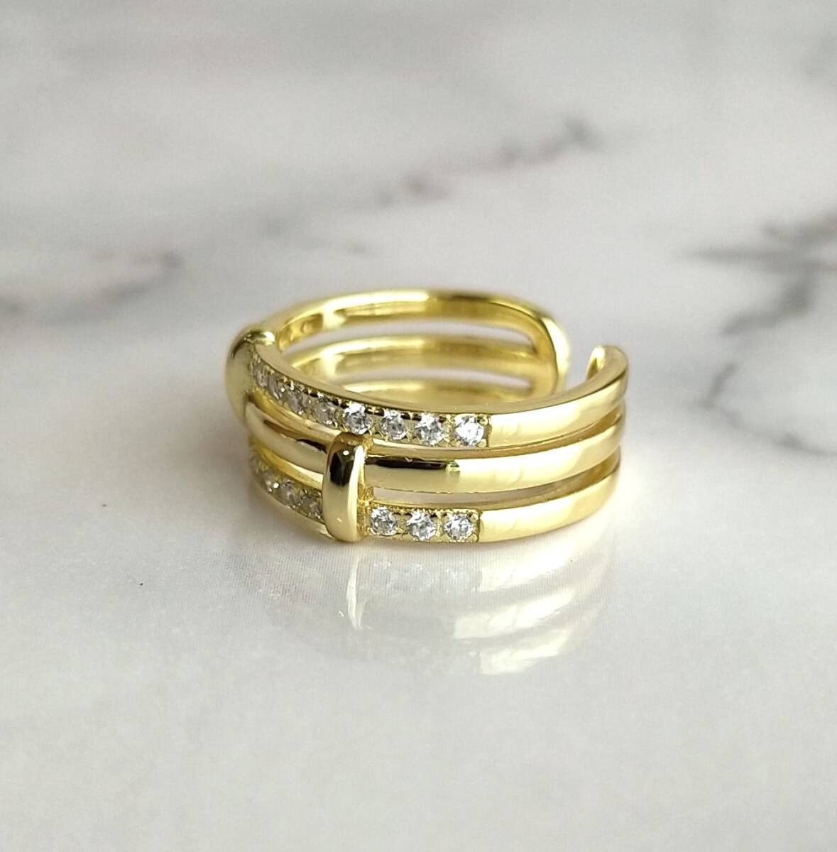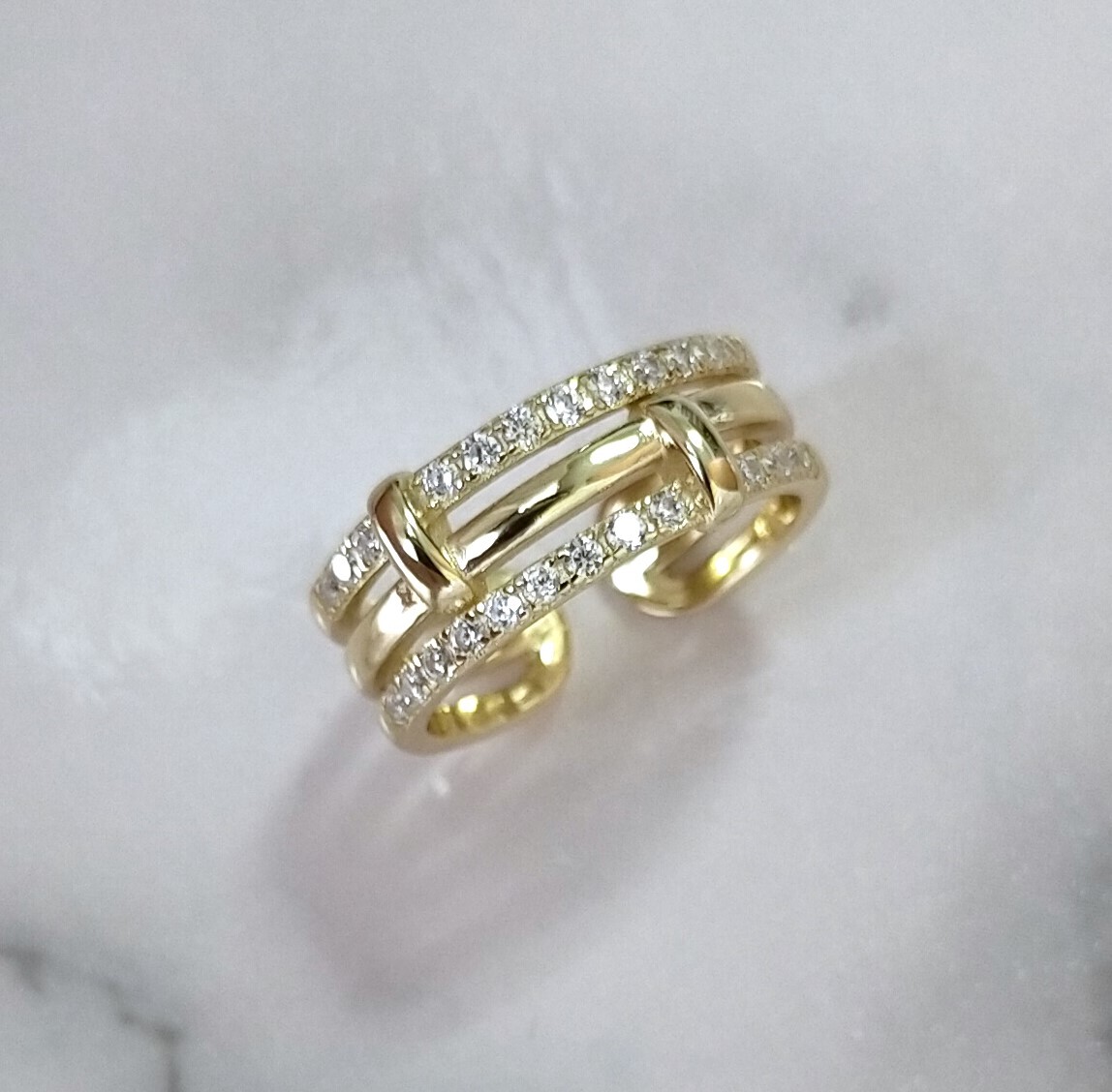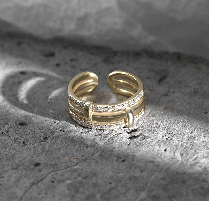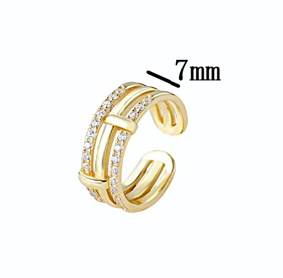 3連風 ゴールド リング シルバー925 フリー 幅広 イヤーカフ 指輪 調節可能 オープンリング