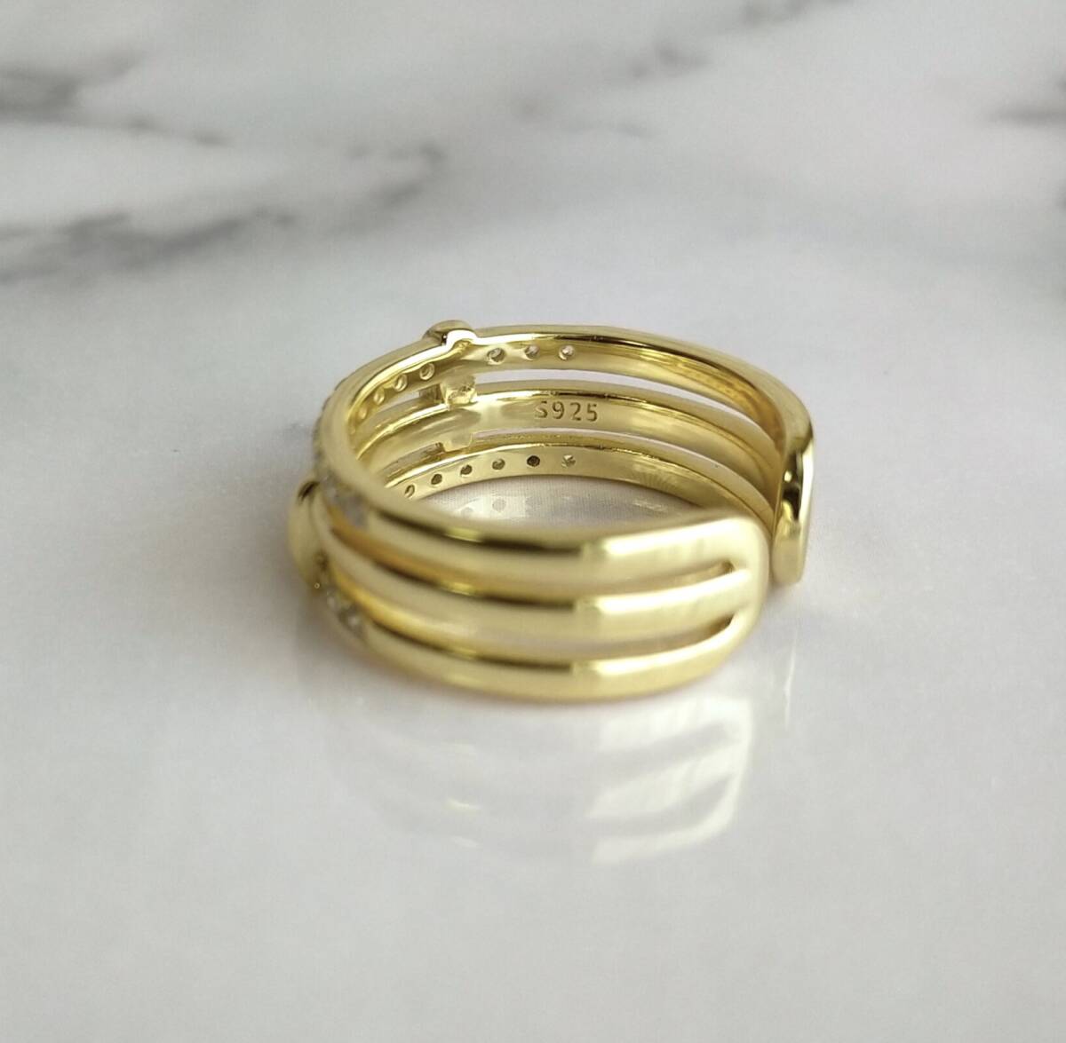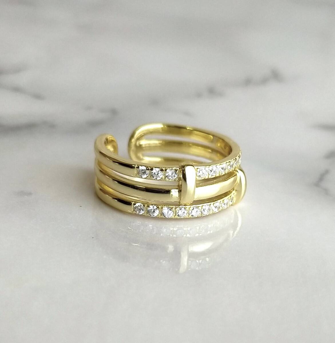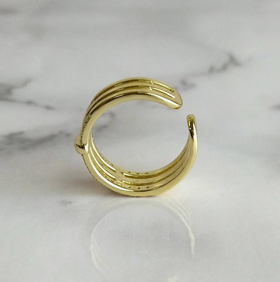 3連風 ゴールド リング シルバー925 フリー 幅広 イヤーカフ 指輪 調節可能 オープンリング