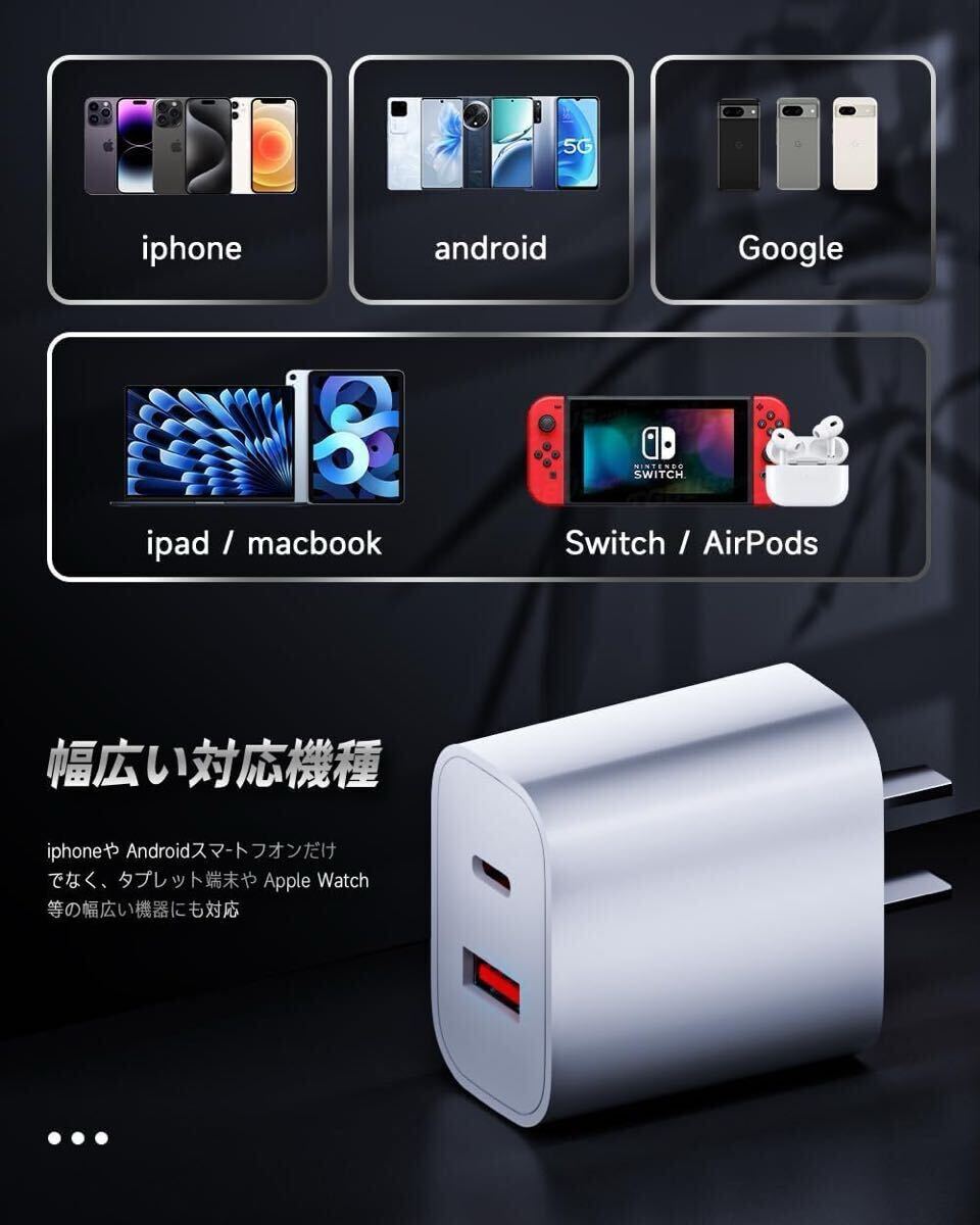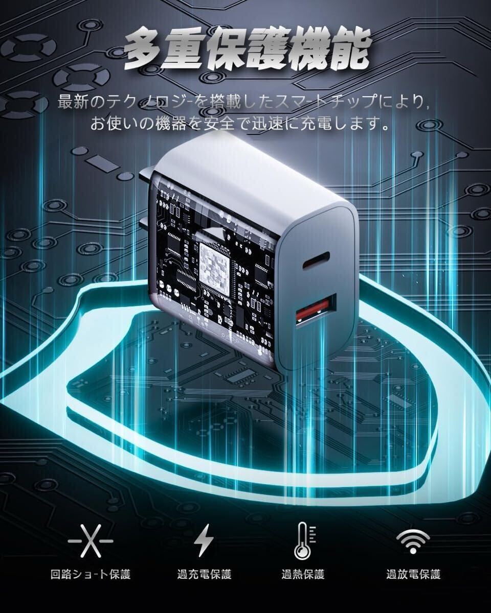 type-c急速充電器は過充電、過熱、短絡防止システムを備え、PSE認証を取得しているので安心して使用できます。iPhoneシリーズやAndroidスマートフォン、タブレットなどさまざまな機種に対応しており、usb-aやtype-c対応機器では最大25Wまでフル充電が可能です。iphoneに適用される14/13分の1 / 12アイパッドair /ギャラクシーs22 / s21 android / switch /ノート20グーグル拡張/ sony xperiaなど各種設備。