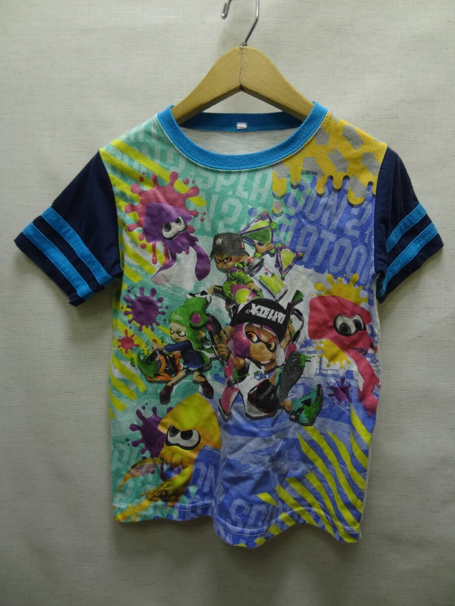 全国送料無料 レア柄!! スプラトゥーン バンダイ製 子供服キッズ男&女の子 ポリエステル65%素材 半袖 BIGプリントTシャツ 130