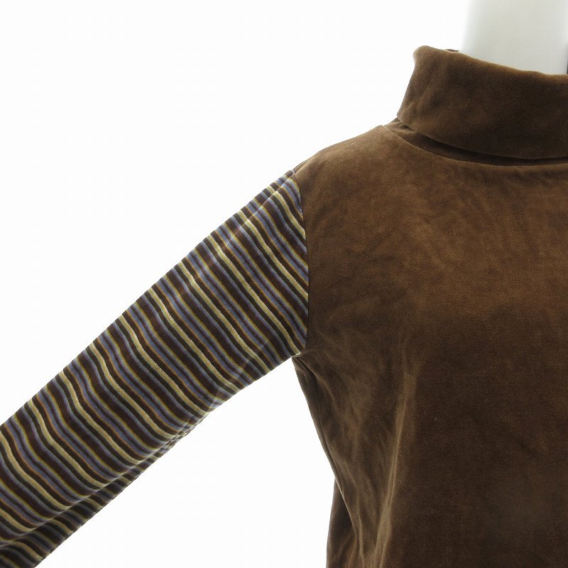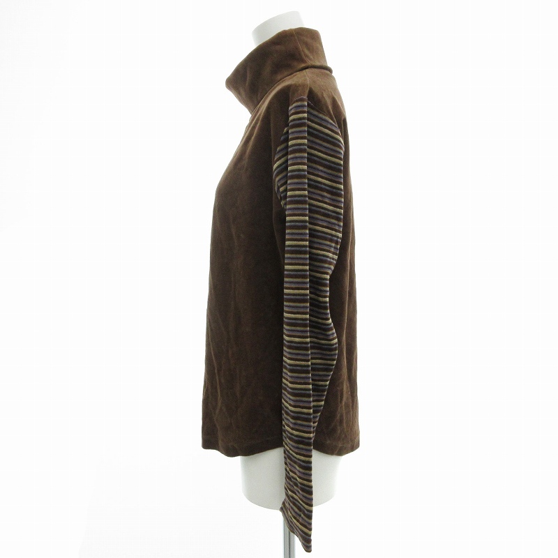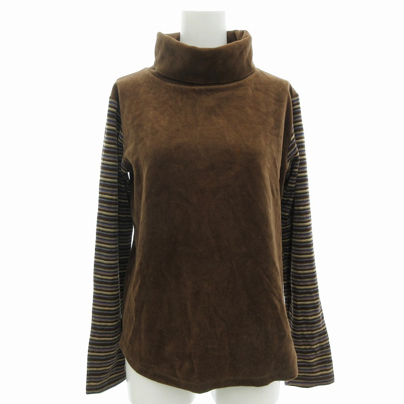 パーソンズ PERSON'S 美品 カットソー タートルネック スリーブ切替 ボーダー 長袖 L 茶 ブラウン /AE レディース